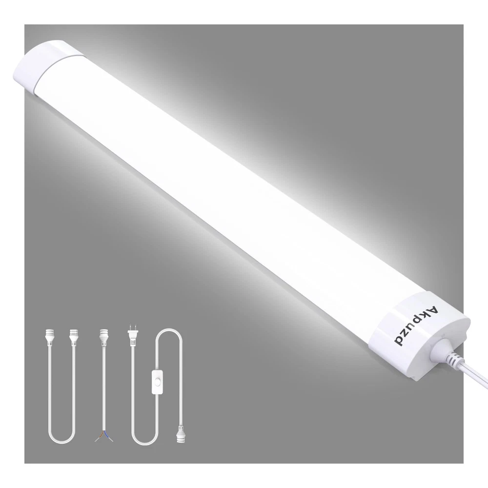 [SUPER BRIGHT & ENERGY SAVING] - The plug-in under cabinet lighting adopts high-efficiency LEDs and provides a bright 2100LM output for using only 18 watts. Save up to 85% on your electricity bill by replacing fluorescent lights with plug-ins under cabinet lights. 5000K daylight, 180° beam angle, our LED undercabinet lighting for kitchen can provide you with comfortable and bright illumination. [Waterproof & WIDE APPLICATION] - Upgrade IP66 waterproof design , makes the 2ft LED light for closet can work well even in humid environment, it's an ideal LED plug in light fixtures for indoor or outdoor, such as wardrobe, under cabinets, basements, living room, closets, workshops, work benches, kitchens, laundry rooms, utility rooms etc. [EASY INSTALLATION & SAVE MONEY] - Only simple 3 steps to complete the workbench light with plug in cord installation! The 2ft plug in light fixtures can be plug-and-play or hardwired to the wall switch. Package comes with all mounting accessories and a user manual for quick and easy installation, very economical and efficient! You can install the plug in overhead light on the wall or ceiling according to your needs. Really a one-step LED utility light solution for you! [LINKABLE & NO FLICKER] - This under cabinet LED lighting could connect up to 18 LED tube lights in series with provided seamless connectors or 12 inches connector cords, Saves your wiring and installation costs. The plug in light strip uses high-quality LED chips and dust-proof frosted cover, no flicker, no buzzing. No RF interference, will not affect other home appliances. [LONG LIFESPAN & 3-YEAR WARRANTY] - we also provide 90-day money-back guarantee and 3-year warranty to our customers, promise this LED workbench light with an average lifespan of up to 30,000 hours, please feel free to contact us if there is any quality problem with the plug in lights for ceiling.