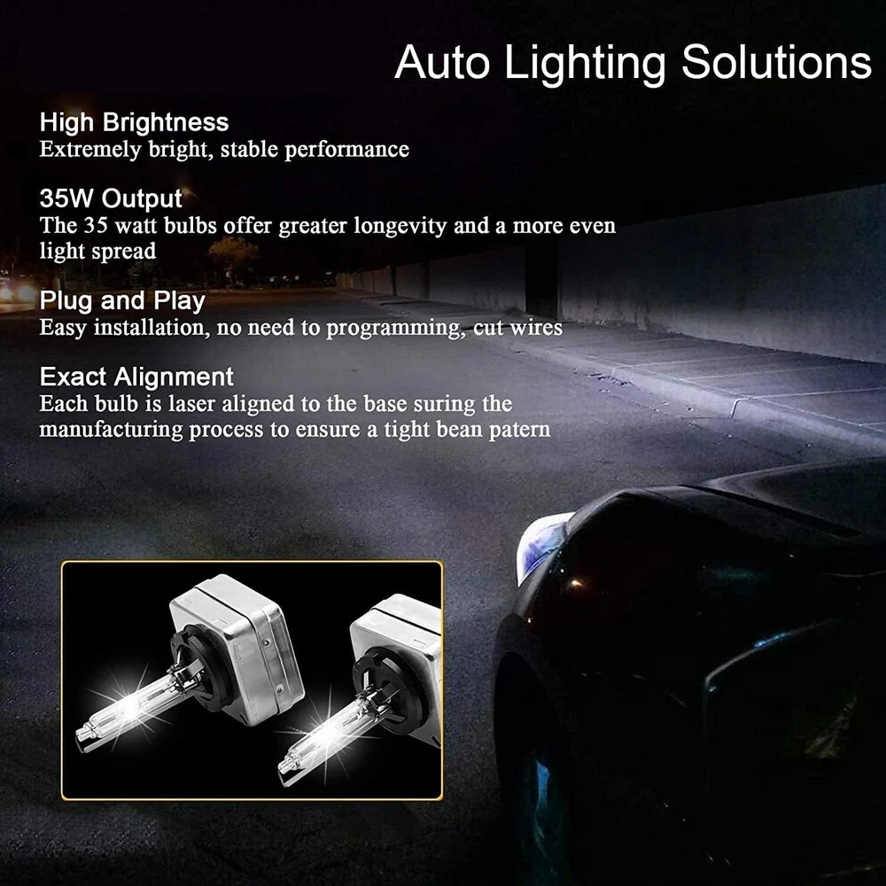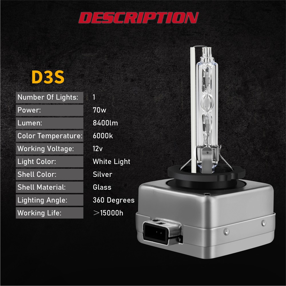 NOTE: *This product can only replace HID Headlight bulbs.Direct Replacement bulb for D3S application (fully compatible as long as your current bulb is 'D3S' type. *This Is For Car Has Factory Hid Need Replacement. Not Hid Kit, If You Use Halogen Bulb Want Upgrade Hid Get Aftermarket Hid Kit, This Will Not Fit. *Please Consult Your Vehicle'S Owner Manual For The Correct Bulb Type And Installation Instruction. If You Are Not Sure, Please Contact Us Before Purchase. D3S High/Low Beam Low power consumption and long lifespan Waterproof and dustproof HID Simple to install With enhanced durability and shock resistance You can see more clearly when driving at night Enhance driving safety Color temperature: 6000K Light Color: White Power: 35W/pcs Type: D3S Working Temperature: -40℃ - +80℃ H16 / 5202 / 2504 Fog Light Plug Type: H16 5202 PS24W Voltage: DC10-24V Colour: 6000K/ White Wattage: 100W Surface Finish: Virtually Unbreakable PMMA Lens Lifespan: >50, 000 hrs Light Color: White Package Includes 2pcs HID Xenon Light Bulbs 2pcs LED Fog Light Bulbs