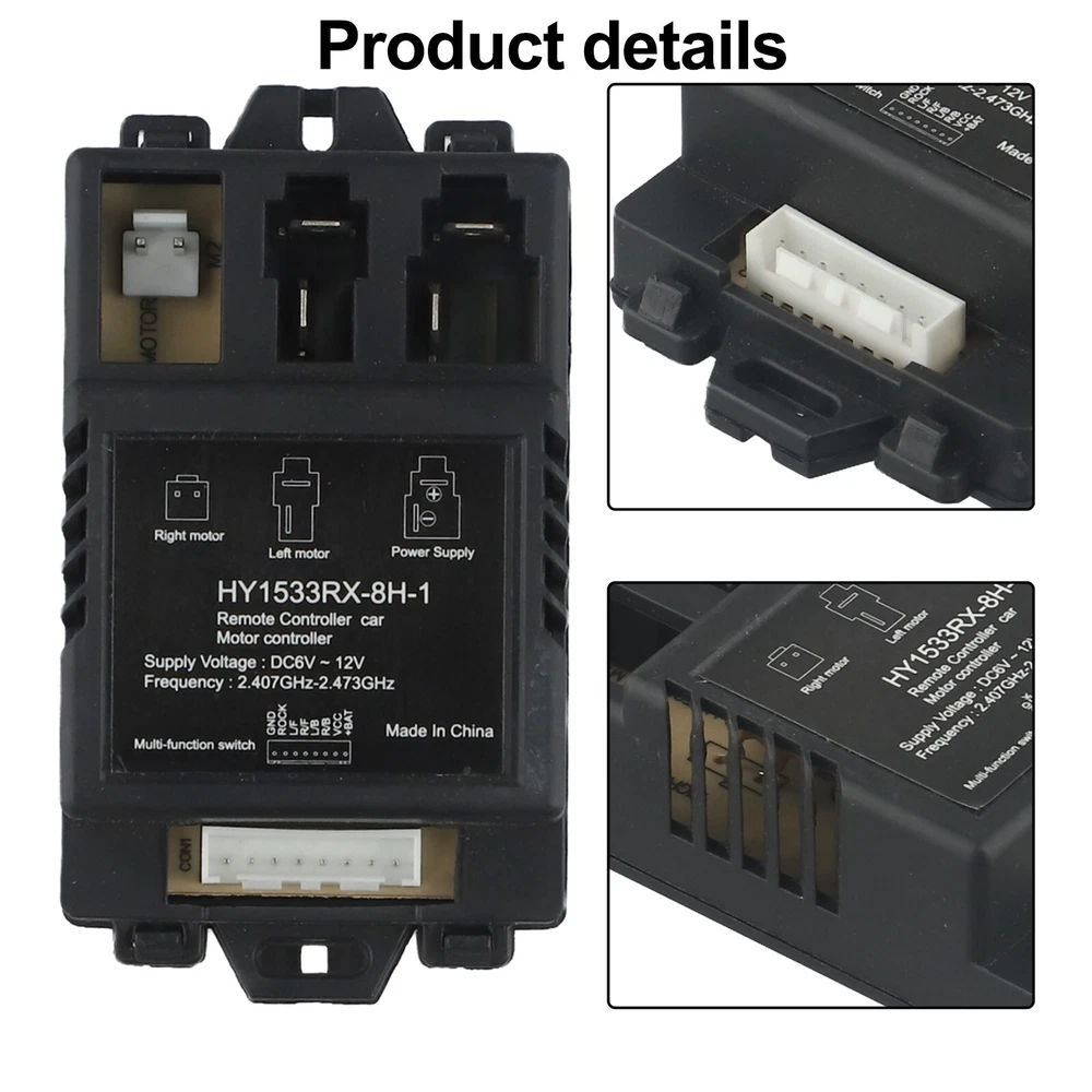 Upgrade Your Child's Toy Car with HY1533RX Receiver for Better Performance DESCRIPTION Features: * Stable performance and high reliability. * How to tell if the control box is suitable for your car? * Open the damaged electric passenger car and check the control box. * If the control box looks the same, the part should fit your car. * The instructions for the remote control are clearly printed on the box. * Frequency matching is required when using it for the first time(or changing the battery); Step 1. Install two AAA 1.5V batteries,(pay attention to the positive and negative polarity in the battery compartment), and finally close the battery cover. The indicator light will flash three times, indicating that the battery is installed correctly. Step 2. Long press the frequency key(select car) for about 2 seconds, and the indicator light flashes Step 3. Turn on the car power, and the indicator light goes out Step 4. If the frequency matching is unsuccessful(the indicator light does not go out), turn off the power and repeat steps 2 and 3. Specifications: Part Name: Children's Electric Vehicle Remote Control or Receiver Model(optional): Remote Control, HY1533RX-8H-1, HY1533RX-8H-2, HY1533RX-9H, HY1533RX-10H-12V Voltage: 6V-12V Material: ABS+Metal Size: Standard Color: As shown in the picture Package Contents: Listing 1: 1 x Receiver Listing 2: 1 x Remote Control Note: 1.The real color of the item may be slightly different from the pictures shown on website caused by many factors such as brightness of your monitor and light brightness. 2.Please allow slight manual measurement deviation for the data. POLICES Shipping Payment WARRANTY We only ship to confirmed ebay Order addresses. Please comfirm that your Order address is in line with your shipping address. Please kindly note that the c ombined shipping is not provided because the shipping fee is calculated by weight. Also, the each additional item means exactly the the same color and size. It takes about 7 -15 working days to US; about 10-30 working days to other countries. Transit time may be a little delayed because of the bad weather and customs inspection . If you do not receive your item within 30 working days since payment finished, please contact us immediately for further assistance. Payment must be completed within 5 days. If you have any problems about payment, please contact us via ebay message. We strive for 100% customer satisfaction! Positive Feedback is very important to us. If you have any questions, p lease feel free to contact us via "Ask seller a question" . We will reply your email within 24 working hours. On Jan 2, 2025 at 07:32:16 PST, seller added the following information: