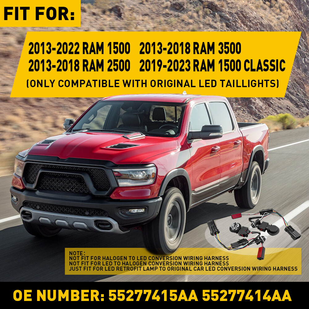 Fit for: 2013-2022 RAM 1500 2013-2018 RAM 2500 2013-2018 RAM 3500 2019-2023 Ram 1500 Classic (Only compatible with original LED taillights) NOTE???/strong> Not fit for halogen to LED conversion wiring harness Not fit for LED to halogen conversion wiring harness Just fit for LED retrofit lamp to original car LED conversion wiring harness ???/p>Specifications: OE Numbers: 55277415AA 55277414AA Features: *Ideal Replacement If the damage occurs, it will lead to poor contact, signal interruption, short circuit and other issues. We should check and replace the old one in time to avoid such problems occur. LED Tail Lights Conversion Wire Harness Kits For Ram 2013-2018 1500 2500 3500 Fit for: 2013-2022 RAM 1500 2013-2018 RAM 2500 2013-2018 RAM 3500 2019-2023 Ram 1500 Classic (Only compatible with original LED taillights) NOTE???/strong> Not fit for halogen to LED conversion wiring harness Not fit for LED to halogen conversion wiring harness Just fit for LED retrofit lamp to original car LED conversion wiring harness ???/p> Specifications: OE Numbers: 55277415AA 55277414AA Features: *Ideal Replacement If the damage occurs, it will lead to poor contact, signal interruption, short circuit and other issues. We should check and replace the old one in time to avoid such problems occur. *100% Brand New Ideal replacement part helps prevent damage to vehicle. All products were tested for performance and to ensure the accurate parameter for your vehicle. *Superior Material Made of plastic and copper wire materials with good electrical conductivity to ensure its long service life and high durability. *Simple Installation Easy installation with a direct replacement, other modifications are not required. *Warm Notice Please confirm the OE number before purchasing to avoid suitability ability. Packaging Include: 1 Set Tail Lights Wiring Harness (Driver Side + Passenger Side) Item Specifics Brand : Unbranded Type : Converters Manufacturer Warranty : 1 Years OE/OEM Part Number : 55277415AA 55277414AA Placement on Vehicle : Left, Rear, Right Features 1 : Ideal Replacement Features 2 : 100% Brand New Features 3 : Superior Material Features 4 : Simple Installation Features 5 : Direct Replacement Interchange Part Number : 55277415AA 55277414AA Universal Fitment : No Packaging Include : :1 Set Tail Lights Wiring Harness (Driver Side Passenger Side) Number of Pieces : 1 Country/Region of Manufacture : China Fit for 1 : 2013-2022 RAM 1500 Fit for 2 : 2013-2018 RAM 2500 Fit for 3 : 2013-2018 RAM 3500 Fit for 4 : 2019-2023 Ram 1500 Classic Fit for 5 : (Only compatible with original LED taillights) NOTE 1 : Not fit for halogen to LED conversion wiring harness NOTE 2 : Not fit for LED to halogen conversion wiring harness Payment (1) Instant PayPal payment is the preferred method of payment. (2) We also accept payment via PayPal, DebitCard, Visa, MasterCard, Discover. (3) We will only ship to the confirmed PayPal shipping address given with the payment. (4) If you want to ship to other address, please change your PayPal shipping address before you make payment. (5) To avoid initiating an unpaid item claim, please pay within 7 days. Shipping (1) We will ship your item(s) within 24 hours. (2) We ship this item to US usually via USPS first class mail. It usually takes 3-6 working days to deliver. Returns (1) We offer free return & money back guarantee. If you are not satisfied with your purchase for any reasons, you can return the item for refund or replacement/exchange. All returns must include the original packaging. (Please refer to our return policy for details.) (2) If you don't return goods within 60 days from date of purchase, your right to cancel will be revoked. Any items damaged because of incorrect installation will not be refunded. Please contact us for return or troubleshooting help prior to returning any products. (3) Unauthorized reselling of AUXITO products is strictly prohibited and we can't honor the warranty if purchasing from the unauthorized reseller. Contact Us [Our office hours are MONDAY - Saturday 9:00PM - 6:00PM PST, but we will response you once we get your message .There will be some delay on respons if you send message or E-Mail on Sundy.] (1).Negative feedback will not help resolve any problems you have, please contact us via eBay messages before leaving negative feedback, our customer service will make best effort to help you with the issues. (2).We maintain high standards of excellenceand strive for 100% customer satisfaction! Feedback is very important to us. We request that you contact us immediately BEFORE you give us neutral or negative feedback, so that we can satisfactorily address your concerns. FAQ Why swith to LED? LEDs not only give your vehicle a clean, modern look but, with proper use, will outlast any halogen bulb and HID bulb! Low energy draw, high lumen output, and instant on/off LED technology out shines stock bulbs in every way. Which bulbs are used in my vehicle? Check Sylvania automotive lamp replacemnt guide, you can select the year, make, and model of your vehicle, then select the application you want to replace or upgrade from stock. What does CAN Bus mean? CAN Bus means Controller Area Network Bus. This system monitors your vehicle and reports operating conditions. CAN Bus systems are commonly found in European vehicles such as BMW, Audi, Mercedes, Volkswagen, Porsche, and in many American vehicles. While most late model American vehicles have CAN Bus systems, it is always good to check with your vehicle dealer to see which system your vehicle has before purchasing electrical products. When do you need Warning Canceller? Some vehicles with cmplex internal computers(such as Audi,BMW,Jaguar,Mercedes,etc.) might report on-dash errors or flickering on the headlights. The warning canceller fixes the dashboard warning and flickering effect. Bulb Out Dashboard Error: On some vehicles, the dashboard will report as if you have a headlight bulb missing or burnt. It does not affect 
