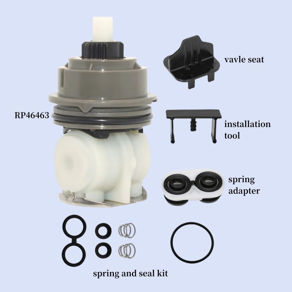 Home Payment Shipping About us Contact us Store Categories Store Categories Electronics Fashion Motors Home&Garden Others Details RP46463 Pressure Balance Cartridge Assembly,Compatible with Monitor 17 and 18 Series Showers Trim (2006 - present),Including Seat and Spring Adapter Product Description RP46463 cartridge has a GREY cap and is for Monitor 17 dual-function shower faucets made after 2006 NOT for single-function Monitor 13/14 series faucet The screw on the old adapter design is not necessary. It could cause leakage and affect the smoothness CAUTION:If your shower was made before 2006, the right part should be RP32104(WHITE Cap) Cartridge for Monitor 17 series dual-function( temperature and volume control) shower faucet. NOT for single-function Monitor 13/14 series faucet. The screw on the old adapter design is not necessary. It could cause leakage and affect the smoothness. Olny Fit Monitor 17 AND 18 Series Showers ( 2006 - present ) Monitor dual-function pressure balance cartridge Dual-function volume and pressure balance temperature control including the RP46463 Cartridge,Valve Seat,and Spring Adapter Before Ordering: check the shower faucet and valve cartridge comparison photos to ensure the correct part number This RP46463 Cartridge Adaptor boasts dual-functional volume and pressure-balance temperature control for maximum comfort. Designed for application in tubs and showers, this cartridge adaptor is compatible with Monitor universal valve body assembly 17 series and 18 series trim. Payment Method Shipping Policy Returns Policy About us Contact us Payment Method Shipping Policy Returns Policy [RETURN_POLICE] About us Contact us Home Payment Shipping About us Contact us