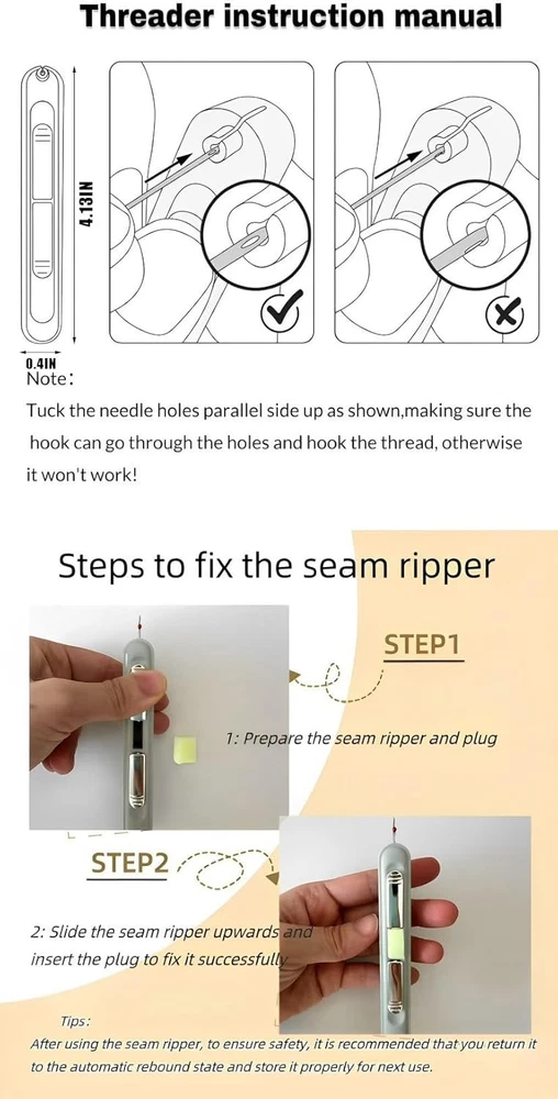 Free eBay listing template designed by dewiso.com Upgraded 2 in 1 Automatic Needle Threaders Seam Ripper,Quilting Supplies Sewing Kit,Quick Sewing Machine Loop Needle Threaders (1PCS-Purple) FREE AND FAST SHIPPING! About this item Do you often get frustrated with threading needles and removing stitches during sewing, crafting, or embroidery? Here comes our amazing 2-in-1 Threader and Stitch Remover that will revolutionize your DIY experience! This incredible tool features a threader on one side and a convenient stitch remover on the other. It's a multi-functional gem that serves as an excellent companion for sewing, handicrafts, embroidery, and various other creative projects. Whether you're working with delicate silk, tough denim, common canvas, cotton fabric, or engaging in cross-stitch, decorative stitching, knitting, or embroidery, it performs outstandingly. It's also perfect for mending clothes, shoes, and other household items, covering a wide range of applications. Using it is a breeze! The unique double-headed design makes threading needles simple and swift. Just insert the threader into the eye of the needle, place the thread on it, and then pull it out gently. Voila, the threading problem is solved in an instant. Its compact size allows you to carry it around with ease, enabling quick repairs and adjustments wherever you are. Storage is no trouble at all! The lightweight, flat, and small-sized tool ensures safe storage of both ends when not in use. You can easily store it in a box or a bag without taking up much space. If you're struggling to find a perfect gift, this Threader and Stitch Remover is an ideal choice for DIY craft lovers in the US. Whether they are seasoned sewing pros or beginners just starting out, it will surely become an essential item to simplify tasks and enhance their creative enjoyment. Don't hesitate. Get it now and embark on a new journey of DIY creativity! Product We offer a 30-Day Return Policy on items which you are not completely satisfied with. You have the option for a full-refund or an exchange of the item. No returns are available on items shipped outside of the US . Shipping We offer Free Shipping to the US and ship within 2 business days of payment, usually sooner. We use UPS express shipping. That's why your products are usually delivered within 3 days . Contact We try our very best to make sure every customer is completely satisfied. If there's a problem , message us! We're happy to help. 24/7 live chat available.