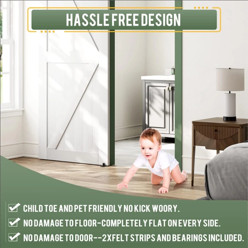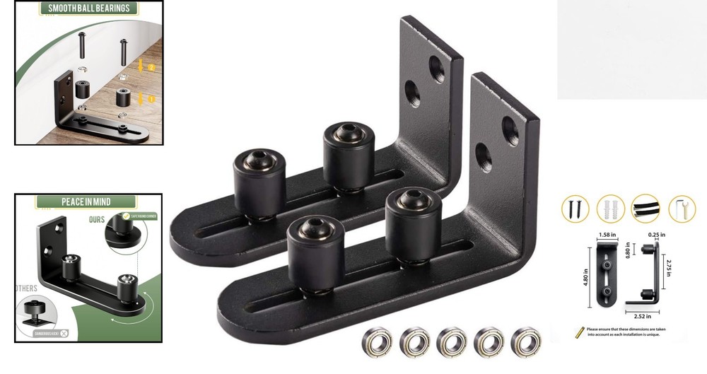 Upgraded 2 Pcs Barn Door Guide | Quiet Ball Bearing, Flush Mount Steel Frame ‹ › ‹ › ‹ › ‹ › ‹ › ‹ › ‹ › ‹ › ‹ › Upgraded 2 Pcs Barn Door Guide Quiet Ball Bearing, Flush Mount Steel Frame Key Features: Exceptional Smoothness: Each wheel is equipped with 2 ball bearings for a whisper-quiet and seamless glide as your door opens and closes, unlike inferior models. Adjustable Fit: Designed with dual rollers that easily adapt to thinner doorboards, ensuring versatility in installation. Safe Design: Our flush mount design utilizes countersunk screws for a perfect, gap-free fit against the floor, preventing any damage to your floors. Child-Safe Corners: Upgraded round corners help avoid tripping hazards, providing safety for children and pets. Heavy Duty Build: Crafted from steel with a sleek black powder-coated finish, combining durability with elegance. Invisible Installation: The Groove system keeps hardware low profile and hidden, ensuring a clean aesthetic without any visible gaps. Why Choose Our Barn Door Guide? Say goodbye to troublesome sliding doors! Our upgraded barn door guide is a crucial component for perfect installation, crafted with materials for quiet operation and exceptional performance. A poor-quality guide can cause unnecessary noise that might disturb your peaceful home, but with our ball bearing wheels, you can enjoy a truly silent glide. In addition to the quality of the materials, the ease of installation is unparalleled; you can have it set up in under 10 minutes with easy-to-follow instructions! Your Solution for Elegance and Functionality: Elevate your home decor with our Upgraded Barn Door Guide. Whether you’re enhancing your living space with sleek functionality or ensuring safety for your loved ones, this product is designed to meet all your needs. Transform your sliding door experience into one of elegance and quiet operation today! Shipping Free & Fast Shipping - We offer free shipping to most of the USA with a normal delivery time of 3-7 days. However, due to the current situation, additional delivery time (up to 3 weeks) may be required for some items. Alternative Carriers - We may use alternative carriers (e.g. USPS, FedEx, UPS, etc.) to ensure your package arrives safely and on time. Due to the use of multiple carriers, we are unable to provide a tracking number automatically. Handling Time - Orders are processed and shipped within 1-2 business days of receiving cleared payment. Shipping Restrictions - Shipping to Alaska, Hawaii, Puerto Rico, Guam, and other US territories may incur shipping charges or delivery restrictions. Please contact us before ordering, or your order can be refunded/cancelled. State Restrictions - There may be restrictions based on your state of purchase. For example, certain items may not be shipped to California due to state regulations. Contact for Tracking Updates - If you require tracking updates or have any concerns about the delivery of your order, please feel free to contact us, and we will be happy to assist you. Return 30-Day Hassle-Free Returns - We want you to be completely satisfied with your purchase. If you are not, you can return the item within 30 days of receiving it for a full refund or exchange. Easy Return Process - To start a return, simply contact us and we will provide you with a prepaid return shipping label and detailed instructions. Restocking Fee - There are no restocking fees for returns. However, the buyer is responsible for return shipping costs if the return is not due to a seller's error. Refund Processing Time - Refunds will be processed within 5 business days of receiving the returned item in its condition. Payment We accept all major credit cards, PayPal, and Apple Pay for your convenience. Your payment information is secure and encrypted to ensure a safe and seamless transaction. Please complete your payment within 3 days of purchase to avoid any delays in shipping. Feedback Your feedback is extremely important to us. We strive to provide the best products and customer service possible. If you are satisfied with your purchase, please take a moment to leave us a positive review. If you have any concerns or issues with your order, please contact us before leaving negative feedback. We are committed to resolving any problems and ensuring your satisfaction. Contact Us If you have any questions or concerns, please feel free to out to our customer support team. You can contact us through the eBay messaging system. We are available Monday to Friday, 9:00 am to 5:00 pm EST, and we will do our best to respond to your inquiry within 24 hours. Buy it now and enjoy a pleasant shopping experience! Model: Barn Door Slide Guide Unit Quantity: 2 Suitable For: Barn Door,Glass Door,Patio Door,Sliding Door Material: Steel Features: Adjustable,Ball Bearings,Flush Design,Durable,Heavy Duty,Upgraded Round Corners,Quiet Operation Type: Barn Guide Color: Black Finish: Powder Coated Item Height: 2.52 Inches Number in Pack: 2 Style: Modern