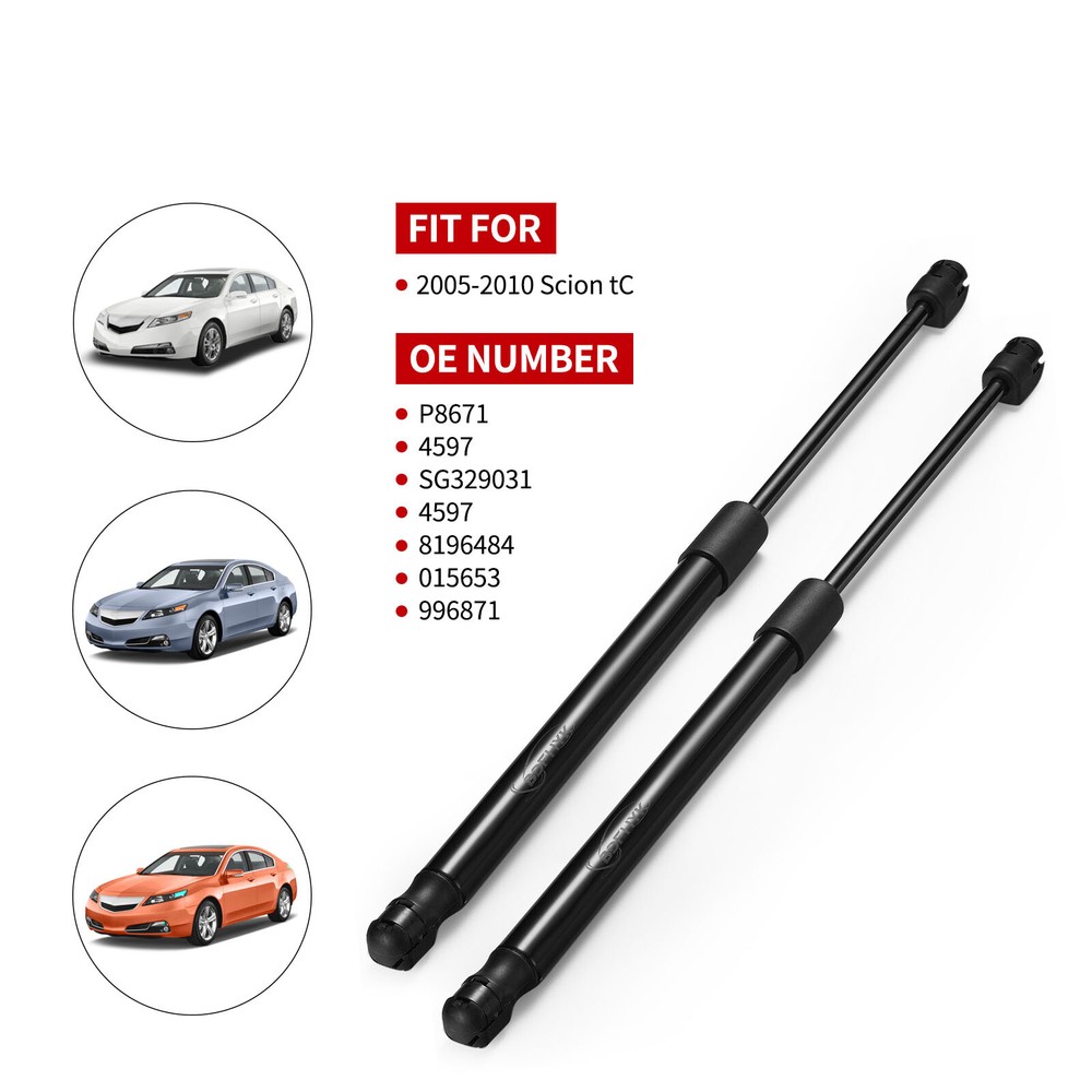 These lift supports are a game-changer for my Scion tC! The installation was quick and easy, and they work even better than the original ones. The added lifting pressure makes opening the hatch effortless, and it stays firmly in place. Perfect fit for my 2008 tC—no more struggling with a sagging trunk. Highly recommend for anyone needing a reliable upgrade!