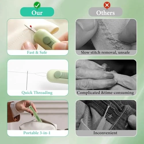 Return Policy Fast Delivery Trusted seller 2-in-1 Upgraded Seam Ripper & Automatic Needle Threader Tool for Hand Sewing | 3-in-1 Sewing Needle Threaders with Case | Quick Threading for Denim, Silk, Embroidery Product Description 3-in-1 Double-ended Design: Innovative 3-in-1 seam ripper tool & stringer simplifies hand sewing—The double-ended design handles the stringer for removing hand-sewing needle threaders. It also comes with a storage needle box, ideal for quilting and repairing Carefully Screened High-Quality Materials: This automatic needle threader for hand sewing is carefully crafted with high-quality ABS and stainless steel materials. Its sharp blades maintain stability during use and improve sewing efficiency. Its compact size makes it easy to carry Durable and Precise: Crafted from resilient materials, our 2 in 1 upgraded seam ripper needle threader ensures seamless operations and precise stitching corrections. Engineered for durability, it withstands daily wear and tear, ing enduring reliability for all sewing projects Easy and Convenient Operation: Just insert the sewing needle threader into the eye of the needle, place the thread on it, and gently pull it out to complete the threading, achieving effortless needle threading and seamless removal of seams without causing eye fatigue Widely Applicable: Threaders for sewing are versatile tools suitable for various sewing projects, including hand sewing, crafting, knitting, cross-stitching, and quilting. Gifting this multipurpose tool to sewing enthusiasts is a great idea Shipping Returns Payment Shipping Shipping is FREE to all addresses other than APO/PO boxes in the lower 48 states. All our stock ships from US-based warehouses. Shipped via USPS or UPS (depending on location and package weight) Unless stated otherwise, all orders will ship within 24-72 hours of your payment being processed. Check our feedback to see the great reviews of FAST shipping we offer. Returns Seller does not accept returns Payment We currently accept payment via eBay managed payments only. Once payment is cleared, we will dispatch your shipment within 1-3 business days. Please refer to the "Shipping" tab for more information regarding shipping speed to your destination.