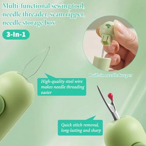 Upgraded 2-in-1 Seam Ripper and Automatic Needle Threader for Hand Sewing