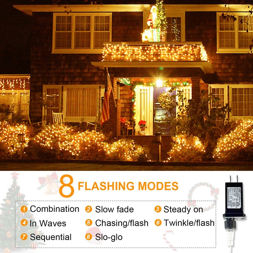 432 LED Icicle Christmas Lights 35.4ft 8 Lighting Modes Low Voltage String Lights