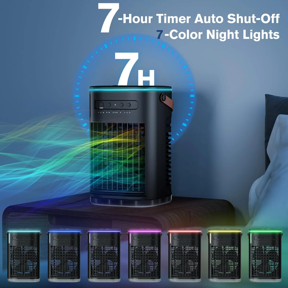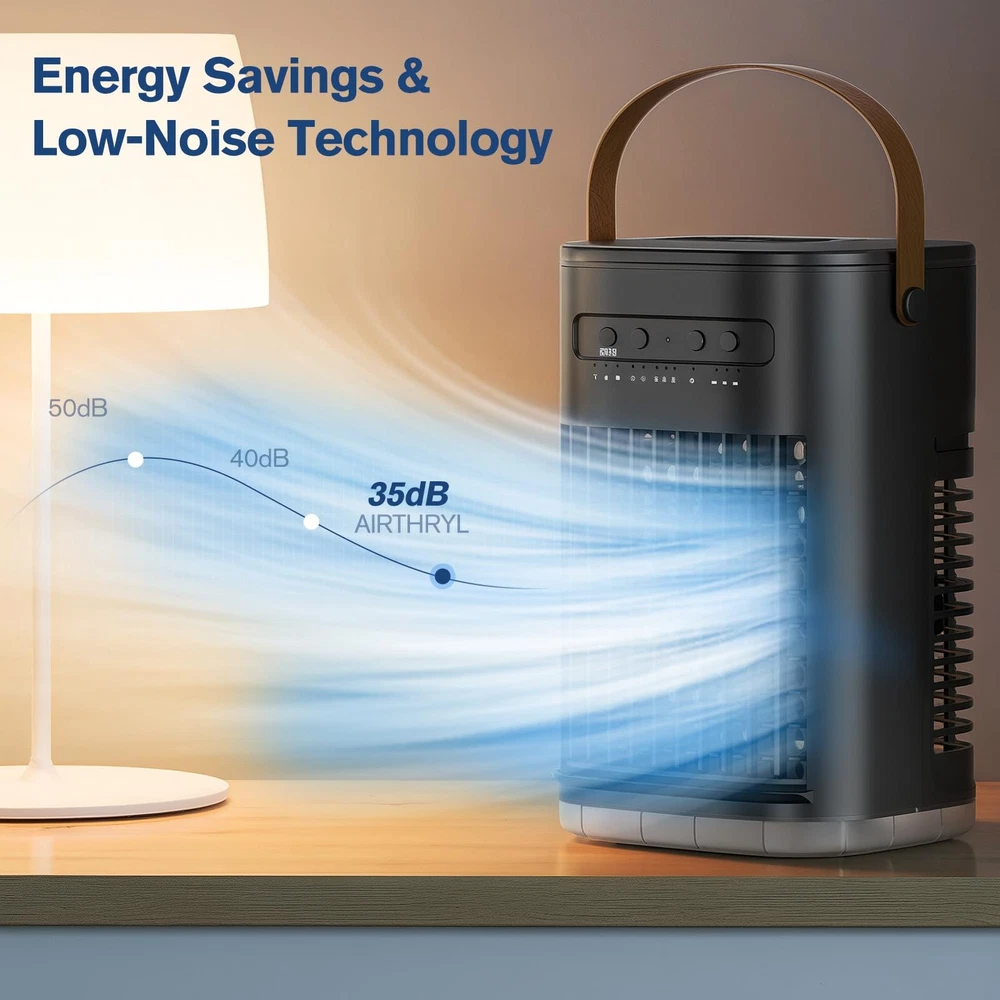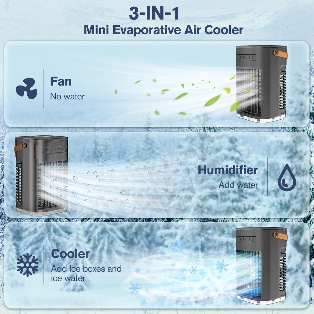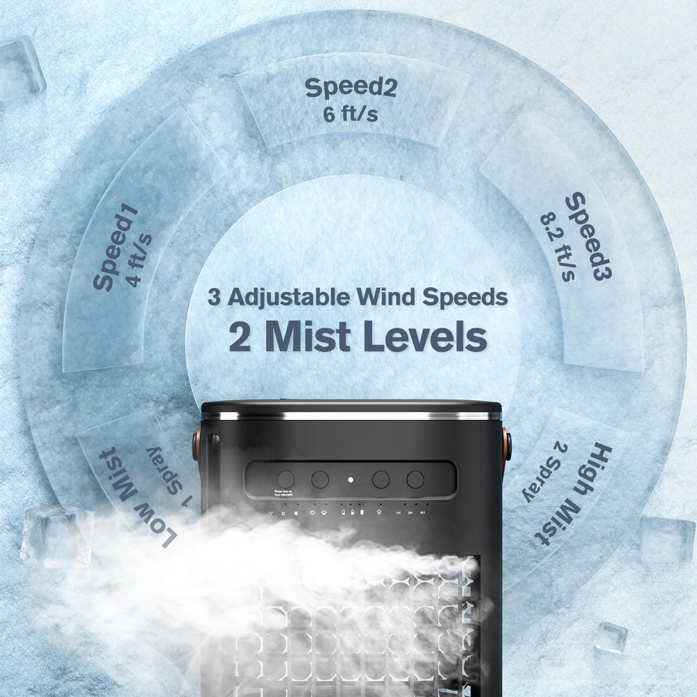 βοΈ γππππ ππ©π π«ππππ ππ ππ¨π¨π₯π’π§π ππ²π¬πππ¦γThanks to the dual-motor power and ultrasonic nebulizer of the mini air conditioner, βs advanced cooling system delivers a blast of icy air in just 3 seconds β chilling the air from 80Β°F down to 59Β°F fast. And easily adjust the airflow angle up and down within a 120Β° range to direct cool air exactly where you need it.
