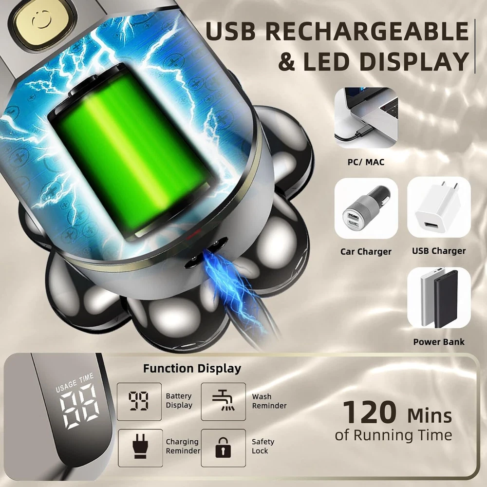 1. This electric razor is a game-changer! The 7D blades give me the closest, smoothest shave without any irritation—perfect for head and face. Love the waterproof design for wet/dry use, and the built-in trimmer is super handy. The LED display and anti-pinch tech make it feel premium. Super fast charging and long battery life mean no more mid-shave interruptions. Highly recommend for a flawless, effortless shave!