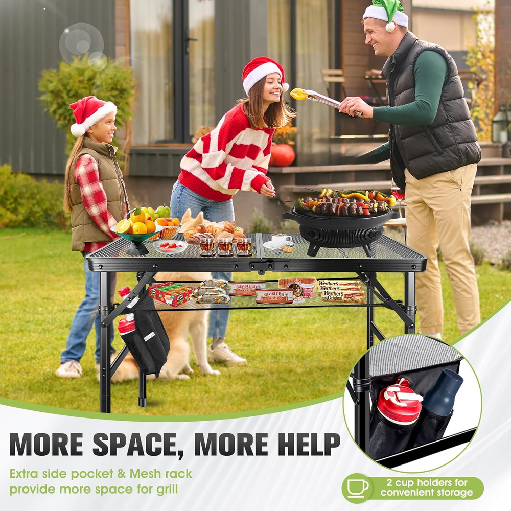Upgraded Folding Grill Table Metal Portable Camping Table Height Adjustable BBQ lightweight & portability:What a great and convenient grill table for all your outdoor grilling prepping stable and spacious! small and compact when fold easy to take along in any mode of travel. it is light enough to pick up even when you have something on your hand. you will get value for your money. the folding grill table even has rubber feet and its a carrying handle design makes it super portable. Tucks into a corner when not in use.The outdoor portable grill table is an absolute gem for any outdoor adventure! upgraded mesh bag and side pocket:The small grill table is equipped with a detachable mesh bag and 2 side pocket. With its efficient storage design, it maximizes space utilization, allowing you to make the most of your available space. The grilling table with storage holds all your outdoor activity essentials,such as condiments, utensils, plates, platters, etc. This folding grill table was just what you are looking for when you wanna go on a trip at any time. Adjustable Height:The folding grilling table has 2 adjustable height positions - 11 inches and 22 inches high. You can pick a comfortable sitting or standing posture based on the 2 heights. This versatile design enables the outdoor table to serve as both a low picnic surface on grass and a standing height cooking station. Whether it's a picnic, BBQ, or party, this table provides convenient for you, your family and your friends. Get yours today! Superior Strength and Durability:Made of a high quality aluminum alloy frame and medium density fiberboard tabletop,The corner of the table has a buckle reinforcement, stable west desktop connection, stable support, not easy to shake. Reinforced steel pipe support, bearing good, with peace of mind,and non-slip protective floor foot caps help for a long time use. The grill table for outside exceeded your expectations with its sturdy construction and convenient fold-out design, making outdoor grilling a breeze. Multiple Uses: This grill table folds out small enough to handle any camping needs. Whether to dine on or to play cards or to set your travel barbecue on and your ice chest at the same time. It’s just the right size for that and yet it folds up to a small easy to carry easy to store table. The legs adjust to uneven surfaces to make it better to use outdoors. It is the perfect addition to the outdoors man at his campsite. Nice small folding grill table very versatile Product Description Assembly Required No Color Black Material Metal Item Weight 4.85 pounds Installation Type Free Standing Handle Material Plastic Frame Material Aluminum Recommended Uses For Product Outdoor Included Components storage bag, folding grill table Special Feature protable Product Dimensions 15.74"D x 5.12"W x 2.75"H Complimentary Shipping and Easy Returns Need to return something? Enjoy our 30-day hassle-free return policy! Take advantage of free shipping across all 48 contiguous states! Your order will be dispatched within 1-2 business days once payment is confirmed. Your Opinion Matters! Your happiness is our main goal! We welcome your feedback! If you encounter any problems, reach out to us right away, and we’ll be here to help. Explore the Extraordinary! Our collection showcases fascinating products that are sure to capture your attention. What surprises await you? Delve in and discover unique items that enrich your daily life. Don't miss the amazing things we have in store for you!