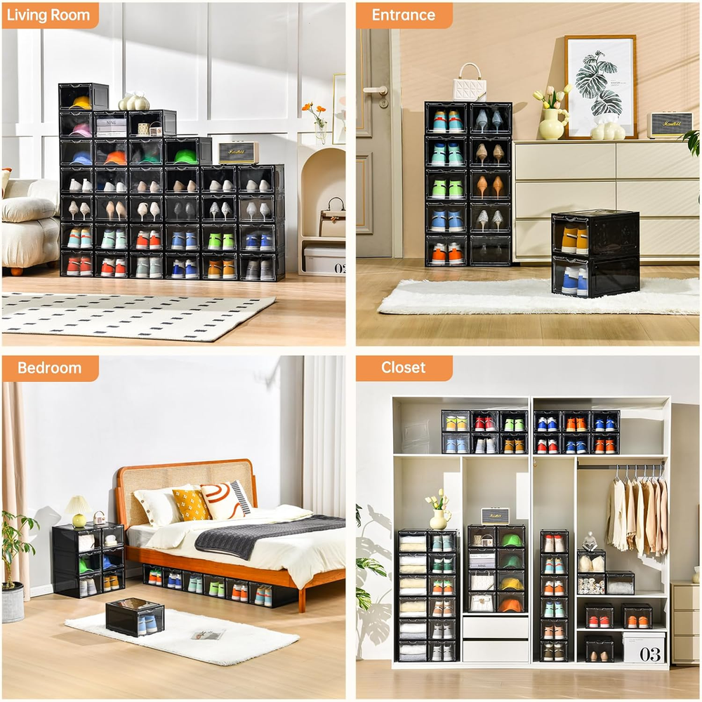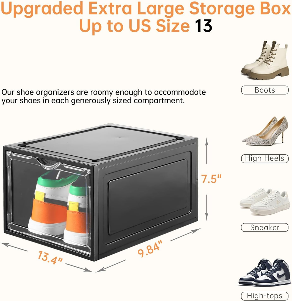 8-Pack Stackable Large Shoe Storage Boxes with Drop Side Lids