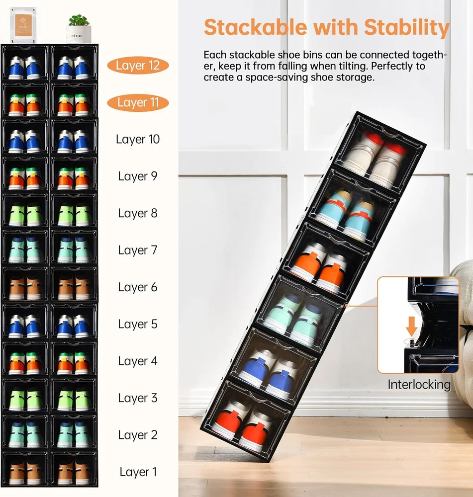$ 19.54For 12 Boxes 36 Tiers Shoe Rack Box Organizer Stackable Cabinet Storage