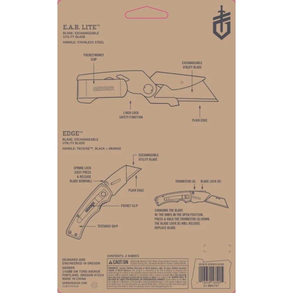 The EAB (Exchange-A-Blade) Lite pocket knife employs contractor grade utility blades that can easily be replaced, keeping you ready and on the go. A stainless-steel body and liner lock construction keep this tool sturdy and stable while in use. The EAB Lite sports a handle that doubles as a pocket or money clip, ever ready and always on hand. The Edge utility knife is loaded with on-the-site features including a spring lock for easy press and release blade replacement, a pocket clip for easy carry, and a readily available, easy to open utility blade. The contractor grade utility blades can easily be replaced, keeping you ready and on the go. TheEAB (Exchange-A-Blade) Lite pocket knife Employs contractor grade utility blades that can easily be replaced, keeping you ready and on the go. A stainless-steel body and liner lock construction keep this tool sturdy and stable while in use. The EAB Lite sports a handle that doubles as a pocket or money clip, ever ready and always on hand. The Edge utility knife is loaded with on-the-site features including a spring lock for easy press and release blade replacement, a pocket clip for easy carry, and a readily available, easy to open utility blade. The contractor grade utility blades can easily be replaced, keeping you ready and on the go. All products are designed and engineered in Portland, OR where many are produced. We tap our global supply chain to create a wide range of activity specific gear for wide variety of consumers
