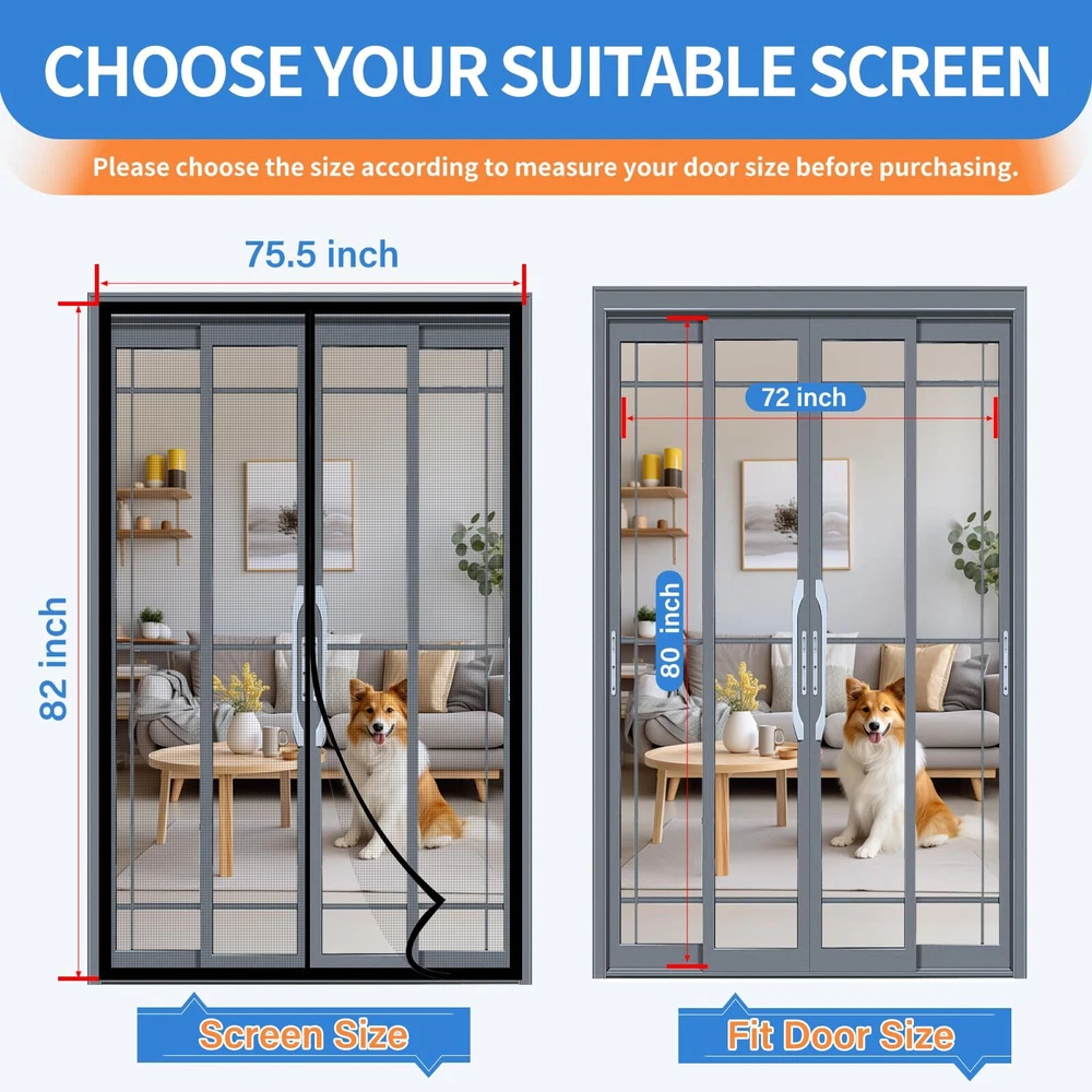 LONGEAS Upgraded PET Mesh Magnetic Screen Door Stronger Than Fiberglass and Polyestera FREE SHIP Upgraded PET Material: This PET magnetic screen door is specially designed for pets, stronger than polyester and fiberglass mesh, can resist any pet's scratching and biting, will not break, and has denser mesh to prevent any insects from entering Kid & Pet Friendly: The screen door mesh is kid & pet friendly. The bottom weighted gravity rod is combined with a strong magnet to ensure kids & pets can easily and freely enter and exit the house without the help of their hands. The magnet screen door will automatically close to prevent insects from entering Effective Insect Prevention: The strong magnets on the retractable screen door can maintain the best seal, 1.6in widened Velcro is safe and firm and will not fall off, the dense mesh can prevent any tiny insects from entering and bring fresh air into your home, enjoy a happy life Quick Installation: The magnetic door screen size is 75.5*82, fit door size is 72*80. You only need to follow the steps in the instructions to quickly install it. Tips: Please measure your door twice before installation to find the most suitable installation position. You can remove it and store it when not in use Exclusive Service: LONGEAS will provide you with the best service, your satisfaction is our greatest reward. If accessories are lost or any problem occurs with the screen door, we can repair or replace it for free. Looking forward to your personal experience Shipping We offer FREE shipping on all orders! We ship within Three business days of payment, usually sooner. We use a selection of shipping services such as UPS, FedEx, USPS etc. We only ship to the lower 48 states, no APO/FPO addresses or PO Boxes allowed. Local pickups and combined shipping options are not provided at this time. Return You can return a product for up to 30 days from the date you purchased it. Any product you return must be in the same condition you received it and in the original packaging. Please keep the receipt. Payment We accept payment by any of the following methods: PayPal Please pay as soon as possible after winning an auction, as that will allow us to post your item to you sooner! Feedback Customer satisfaction is very important to us. If you have any problem with your order, please contact us and we will do our best to make you satisfied. Contact Us If you have any queries, please contact us via ebay. We usually respond within 24 hours on weekdays. Please visit our eBay store to check out other items for sale! Thank you for shopping at our store.