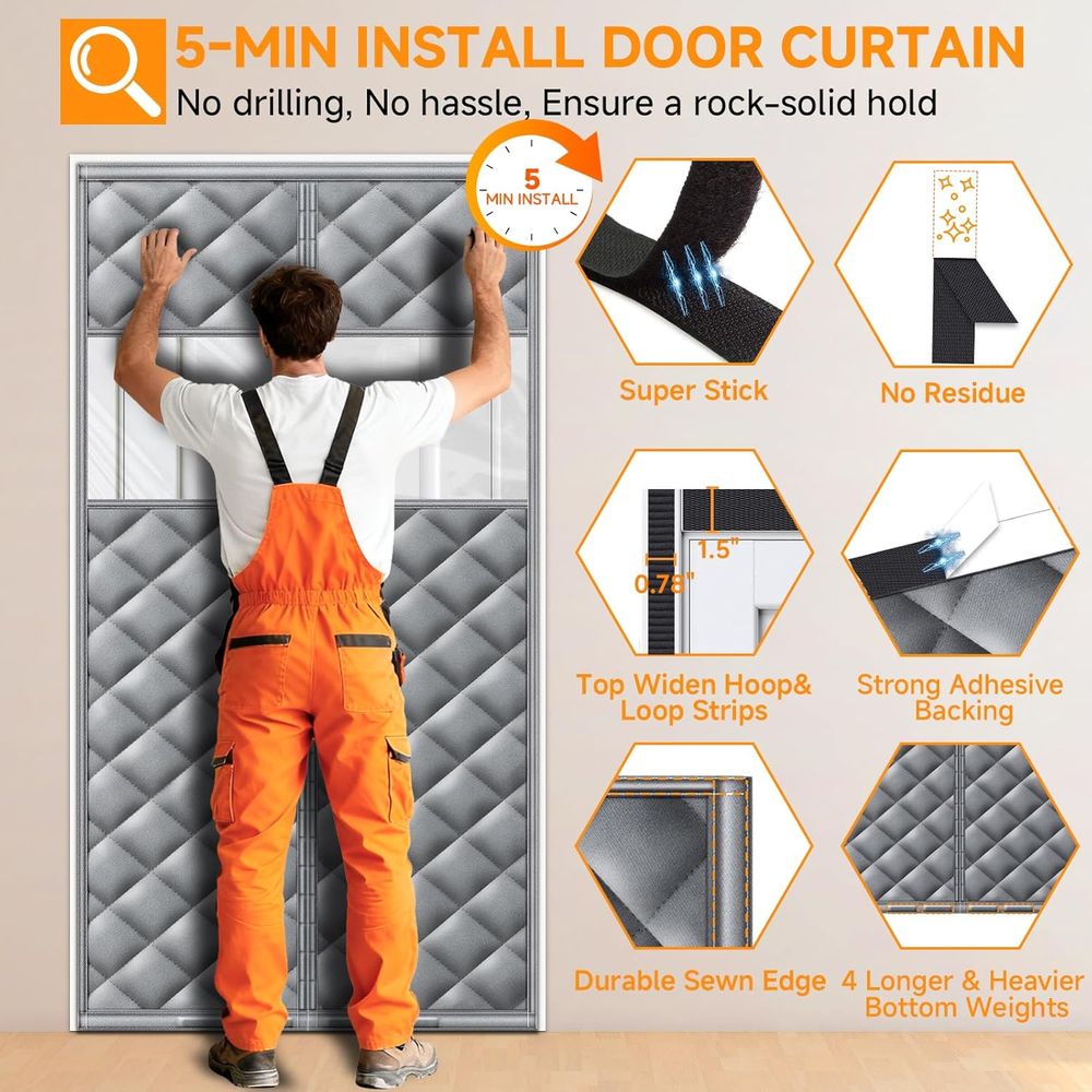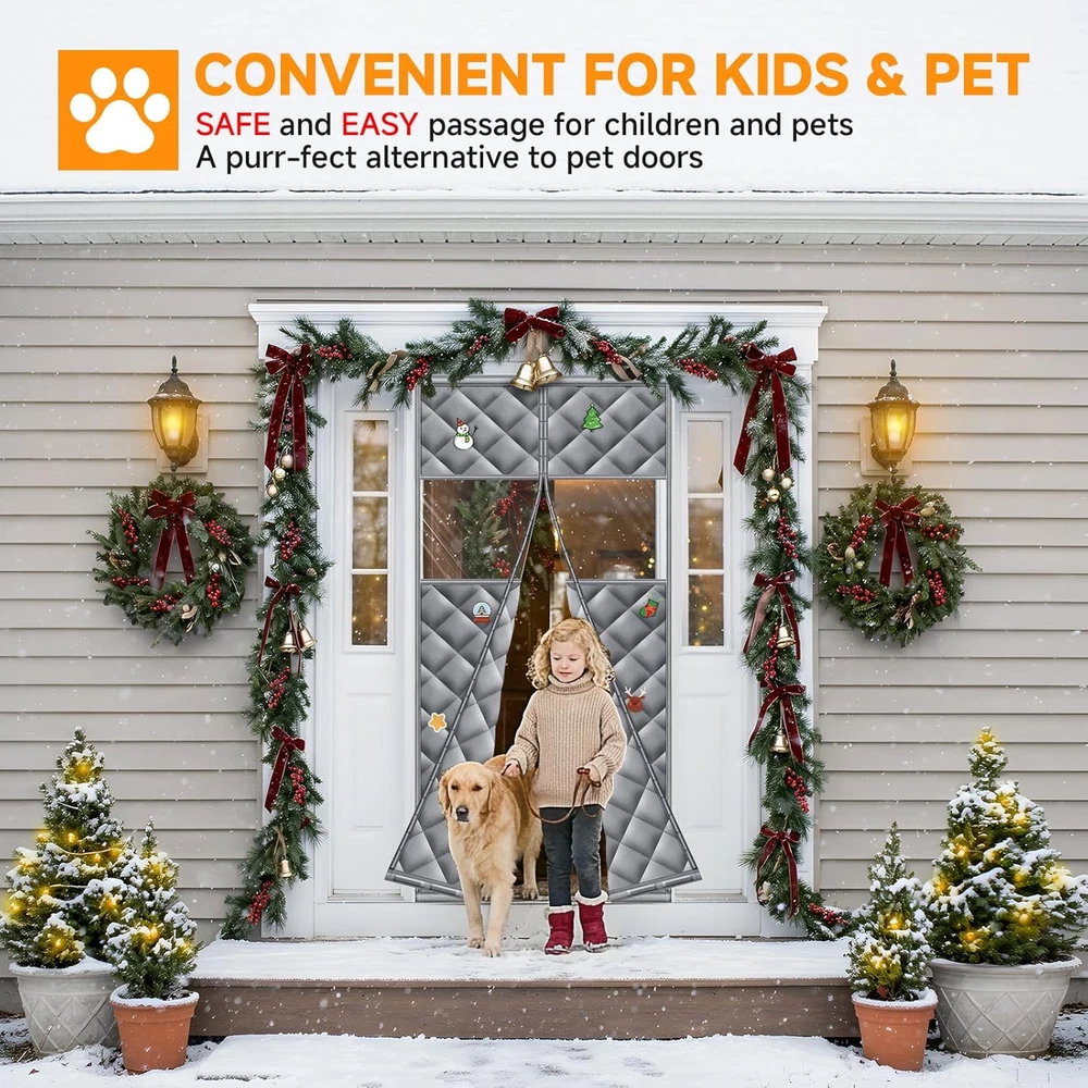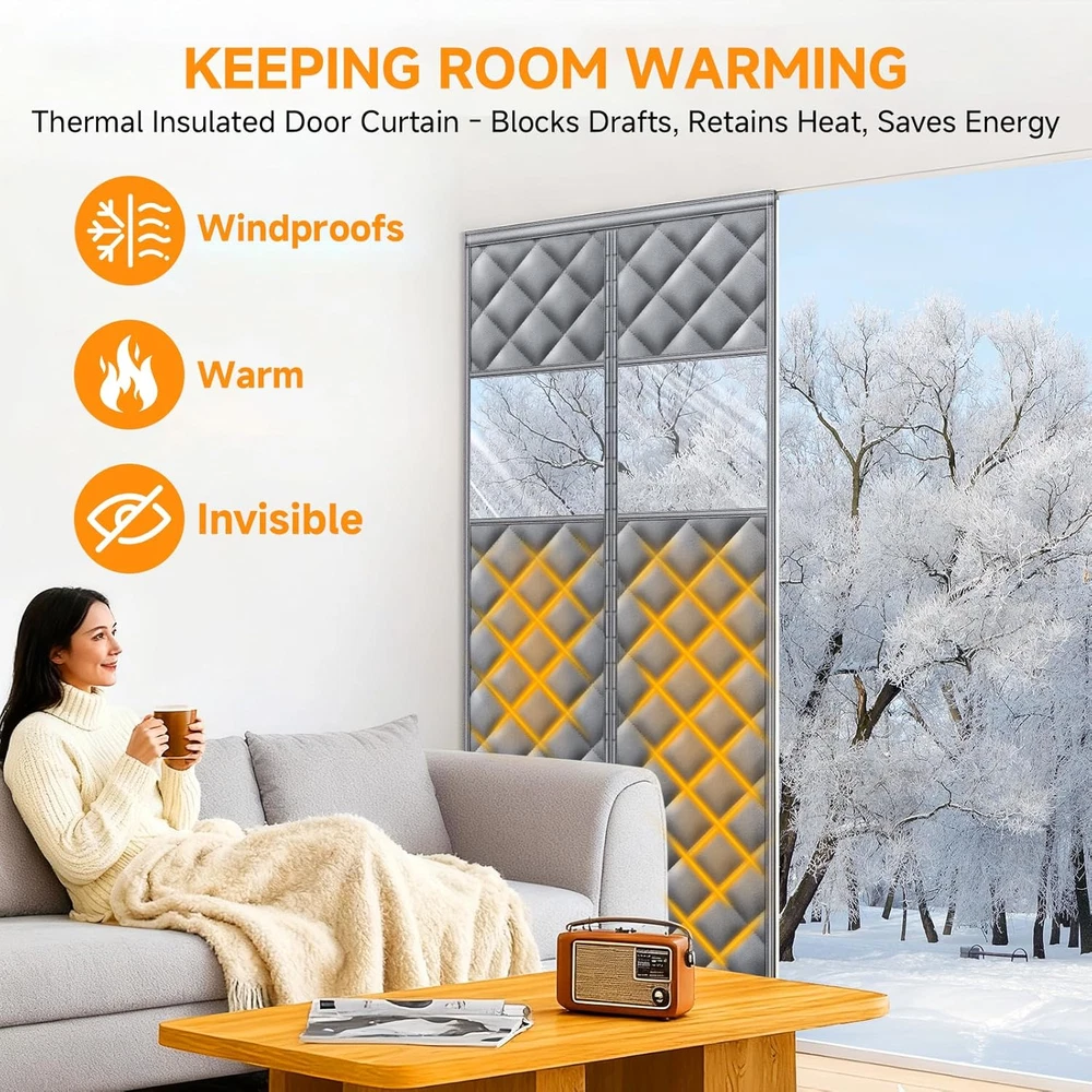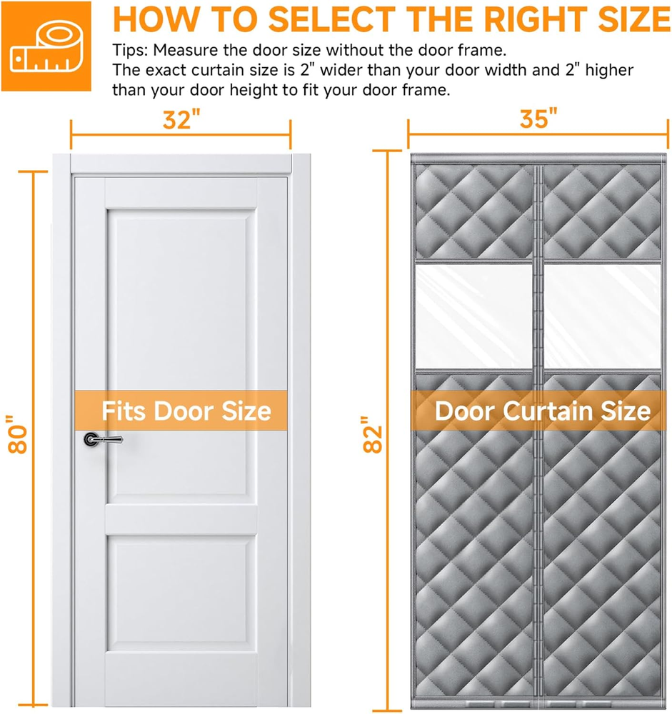 Store New Arrivals Add to Favorite View Feedback Contact Upgraded Magnetic Thermal Insulated Door Curtain with Perspective Window, Weatherproof Oxford Cloth Filled with Cotton, Fit for Door Size 32" X 80", Doorway Curtains Size 35" X 82" Grey Description Style Door Insulation for Winter Assembly Required Yes Color Grey and Clear Material Oxford Cloth Filled with Thicken Cotton Batteries Required? No Item Weight 3 Pounds Batteries Included? No Usage Pet-Friendly, Windproof & Insulation Special Features Hook & Loop, Noise Reduction, Thermal Insulated, Windproof Size Fits Doors Size 32" x 80" Product Dimensions 1 x 35 x 82 inches Included Components Insulated Door Curtain×1, Instruction manual×1, A Box of pushpins, velcro (wide)×1 , velcro (narrow)×1, Hook×2 Oxford Cloth Filled with Thicken Cotton Fits Door Up to 32x80 inch: This HOFUDON insulated door curtain measures 35" x 82" and fits door openings up to 32" x 80" (excluding frame). A versatile door cover that works for entryways, patios, kitchens, sliding doors, hallways, or basements during the winter season, Please measure your door before purchasing to ensure a proper fit Visible Window for Light & Comfort: Unlike ordinary thermal curtains, this upgraded design features a clear window panel that lets natural light in and allows you to see outside without opening the curtain. A smart choice for both brightness and door insulation for winter. Upgraded Triple-Layer Fabric: Made with durable Oxford cloth, soft cotton filling, and waterproof coating, this thermal door cover for winter delivers superior insulation. The insulated door curtain blocks cold drafts, reduces dust, and minimizes noise for a warmer and more private home. Strong Magnetic Seal & Weighted Bottom: Built with 29 pairs of strong magnets for quick auto-close and 4 weighted bars at the bottom, this door curtain stays sealed and resists wind. It creates a reliable window insulation for winter to stop cold air from entering and keep warmth inside. Pet-Friendly & Worry-Free Service: This thermal door cover for winter opens and closes easily, making it convenient for kids and pets to pass through without hassle. HOFUDON also provides responsive customer support—if you have any issues with your door insulation for winter, we’re here to help. Product description The video showcases the product in use. The video guides you through product setup. The video compares multiple products. The video shows the product being unpacked. thermal insulated door curtain Merchant Video Pet-Friendly Design Easy for Pets to Go In and Out Freely Soft and flexible material makes it safe for pets to pass through without getting caught or scratched. Perfect for dogs and cats who love to wander in and out freely — no need to open the door constantly. The quiet magnetic closure won’t startle your pets or disturb your sleep. Waterproof & Windproof Fabric Stay Dry, Warm, and Comfortable All Year Round Crafted from high-density, waterproof-coated Oxford cloth fabric that effectively blocks rain, moisture, and cold air. The durable layer helps maintain indoor temperature and protect against drafts — ideal for use in kitchens, garages, patios, or balconies throughout all seasons. The video showcases the product in use. The video guides you through product setup. The video compares multiple products. The video shows the product being unpacked. insulated door curtain Merchant Video The video showcases the product in use. The video guides you through product setup. The video compares multiple products. The video shows the product being unpacked. insulated door curtain Merchant Video Strong Magnetic Closure – 29 Pairs of Magnets Snap Shut Instantly, Seamless and Hands-Free Built with 29 pairs of evenly distributed strong magnets, the curtain automatically seals itself every time you pass through — no gaps, no fuss. It closes quietly and smoothly behind you, keeping bugs and cold air out while allowing effortless entry, even when your hands are full. Convenient Hook Design Roll Up and Hang When Not in Use Comes with built-in hooks so you can easily roll up and secure the curtain when you don’t need it. Keeps the doorway tidy, prevents the curtain from touching the floor, and makes cleaning or airing out the space simple and neat. The video showcases the product in use. The video guides you through product setup. The video compares multiple products. The video shows the product being unpacked. insulated door curtain Merchant Video 1 Clear View Design 2 Easy Velcro Installation 3 Magnetic Closure Full Velcro Seal The 1.5 inch wide Velcro provides a stronger grip, prevents the curtain from falling, and keeps the doorway looking neat. Windproof Bottom Built-in weighted blocks keep the curtain securely in place, preventing flapping from wind and helping maintain a cozy, draft-free doorway. Double Stitching Reinforced edges prevent tearing and fraying, ensuring long-lasting strength for daily use. Easy to Hang Up Convenient hooks allow you to hang the curtain aside neatly when not in use, keeping your doorway organized. ABOUT US We offer the best prices around on high quality products. Our E-store includes media such as books, movies, music and games while offering electronics, toys, sporting apparel, clothing, tools, general home, garden items and more. SHIPPING We are always working hard to ensure your package arrives as soon as possible. Please understand that some factors like weather, high postal traffic, and the performance of shipping companies are outside of our control. We offer free shipping to the lower 48 states and ship within 2 business days of payment, usually sooner. We do not accept P.O. Boxes. Please provide a physical address. For shipping outside of the continental USA, we only use eBay's Global Shipping Program.The item is shipped to KY and then sent to the rest of the world. International customers are responsible for all duties and taxes. Continue to check out in order to c