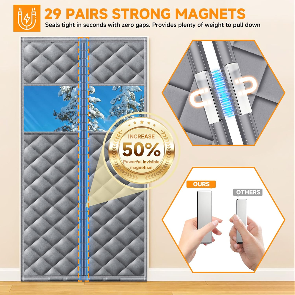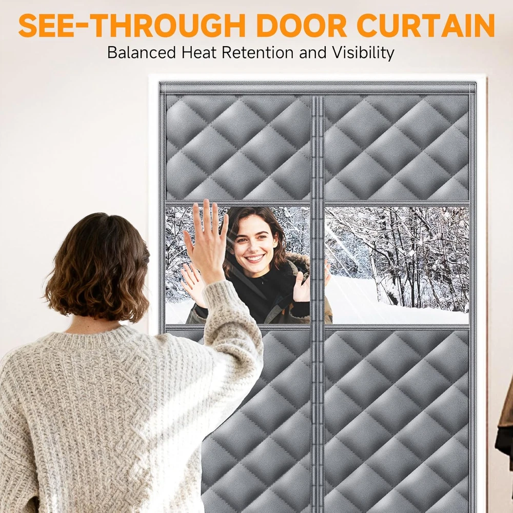 Upgraded Magnetic Thermal Insulated Door Curtain with Perspective Window, Weathe