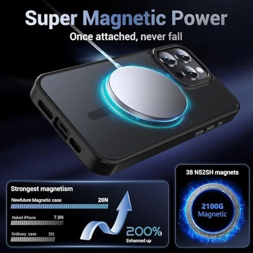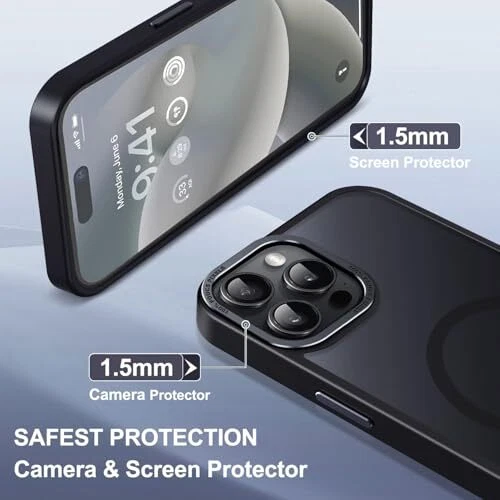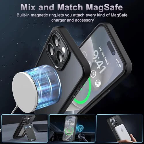 Upgraded Magnetic for iPhone 15 Pro Max Case [Compatible with Magsafe] Black