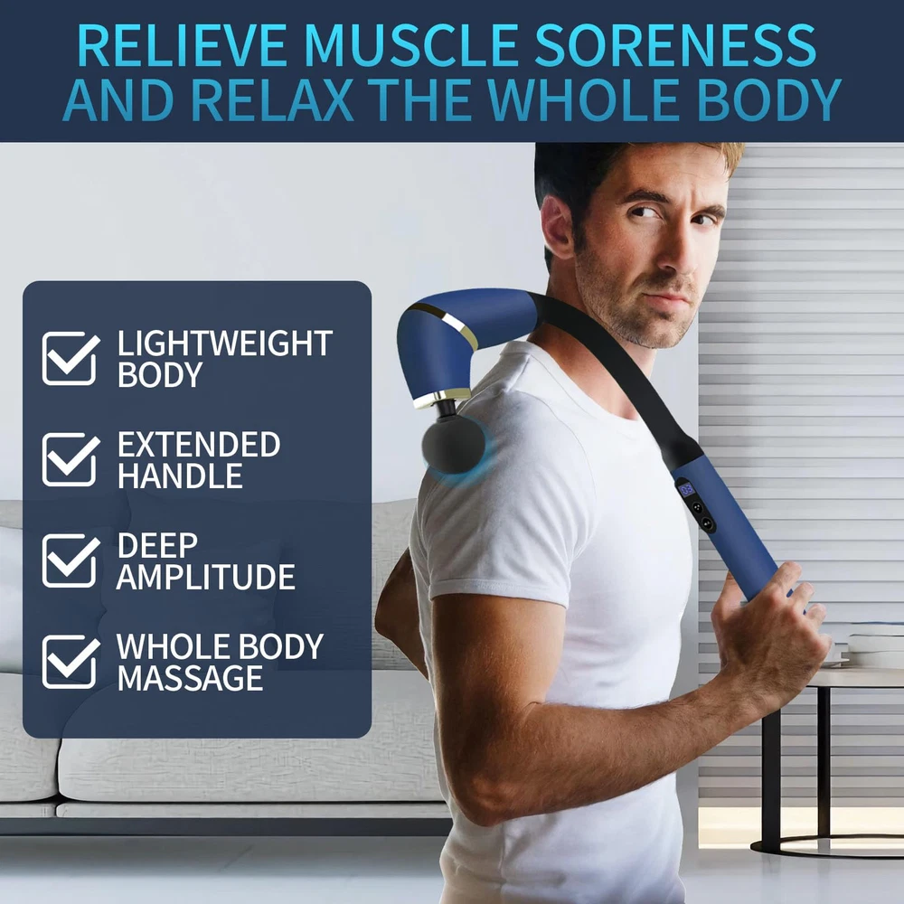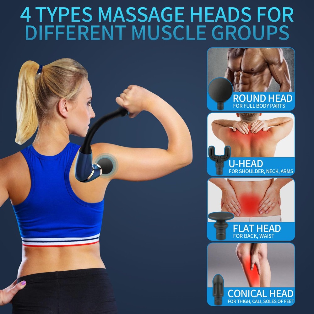 Upgraded Massage Gun with Extended Handle, Portable Back Massager featuring 4 Massage Heads for Deep Tissue Relief and Recovery