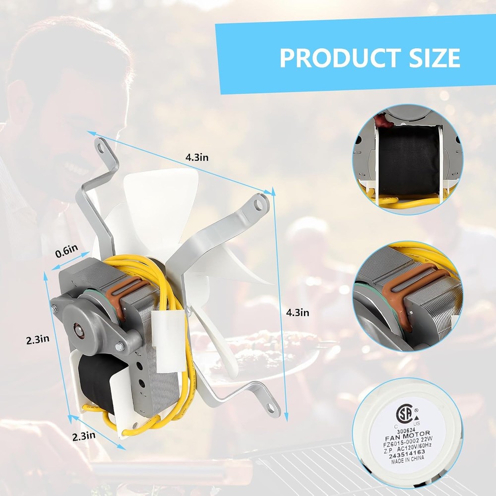 Replacement Induction Fan Kit, Upgraded Induction Fan Motor, High Temperature Resistant Grill Induction Fan, Combustion Fan for Traeger, Pit Boss, Camp Chef Wood Pellet Grill Smokers Description Features: 【Widely Compatible】: This pellet grill induction fan is compatible with all Traeger grill modes and grill tables for Pit Boss, Traeger, Camp Chef, and most other wood pellet grills (except PTG), taking your grilling experience to the next level. 【Efficient Operation】: The induction fan replacement is equipped with a powerful motor and a new upgrade design. Compared with the original induction fan, it runs faster and hotter, which can effectively shorten the time to cook food. Even at high power, induction fan motor can run quietly. 【Improve Efficiency】: Fan accessories motor moves air into the fire and flows through the grill, helping to reduce large temperature fluctuations, speeding up air circulation, making heat distribution more even, and food can be heated more consistently, thereby shortening grilling time and improving grilling efficiency. 【Long-lasting & Durable】: The replacement induction fan is made of premium quality heavy-duty white nylon fan blades with high-temperature resistant resistance wire, with low loss and good performance. It can run stably and for a long time, and it is durable and reliable to provide long-lasting support for your barbecue activities. 【Easy Installation】: We will provide you with the 4 screws and plug-and-play wire installation accessories required for the induction fan kit. Simple operation, grill induction fan can be easily installed on your grill without complex installation and professional skills, making the grill look brand new again. Product Details: Product Dimensions : 6 x 3.8 x 5.8 inches; 1.37 Pounds Item model number : rk32987 Manufacturer : Subody Cldkz Brand: Subody Cldkz Power Connector Type: 4-Pin Wattage: 22 watts Cooling Method: forced air Compatible Devices: Grill Smokers Material: Nylon Manufacturer: Subody Cldkz Number of Items: 1 Handling We will ship all orders within 3 business day of payment. Delivery We take pride in offering fast and reliable delivery for your orders! We are committed to getting your products to you as quickly as possible. Generally, we would like to inform you that all orders will be delivered to you within 1-3 business days after processing.However, in some cases, delivery times may vary depending on the buyer's location. Especially in remote or rural areas, the expected delivery time may be extended. In such situations, we do our best to ensure that your order reaches you as quickly as possible.If there are any delays, we will be happy to contact you to explain the situation. Our goal is to enhance your satisfaction with our fast delivery times. We work diligently to ensure that your order arrives safely.Trust us and enjoy our speedy delivery! Return Policy All items qualify for returns within 30 days of receipt. Buyer is responsible for return shipping on any item that is not damaged. Feedback We take our reputation seriously, we buy and sell online, so we understand the value of trust. If you are unsatisfied with your order, please contact us and we will work with you to resolve it to your satisfaction.