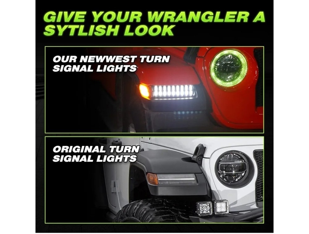Just installed these LED fender lights and they look amazing! The smoked lens gives my Jeep a sleek, aggressive look while the bright LEDs are super visible. Easy plug-and-play installation—no wiring mods needed. Super durable build and perfect fit for my JL. Highly recommend upgrading to these!