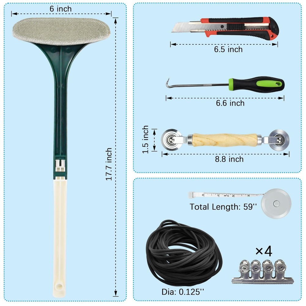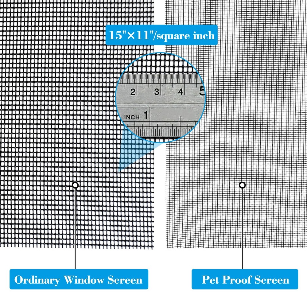 【Screen Repair Kit】Our package includes: Thickened Pet Proof Window Screen, Wood Handled Spline Tool, 2 x 14.5ft Screen Retention Splines , knife, spline removal hook, tape measure, 4 bull clamps and an expandable window cleaning brush 【Screen Repair Kit】Our package includes: Thickened Pet Proof Window Screen, Wood Handled Spline Tool, 2 x 14.5ft Screen Retention Splines , knife, spline removal hook, tape measure, 4 bull clamps and an expandable window cleaning brush 【Heavy Duty Pet screen】The upgraded pet proof screen is designed specifically for pets and made of reinforced PVC coated polyester. Different others, pet-proof screen is more thick and durable, can prevent animals from destroying your screen 【Multiple Functions】Pet proof window screen is in size 15x11(apertures/sq.in.), allowing for natural circulation of fresh air while providing high visibility and keeping pets safe indoor. The perfect balance between protection, shade and visibility 【Widely Used】Window screen replacement has extremely high thickness and is suitable for a variety of applications: screen repair, screen doors, car screens, cat and dog sliding doors and other DIY screen applications 【Easy to Install】Available in a variety of sizes :36 "/48 "/60 "x100", suitable for all sizes of DIY design requirements. This is enough to make some storm Windows/doors or repair some screen doors with material left over, saving costly repairs