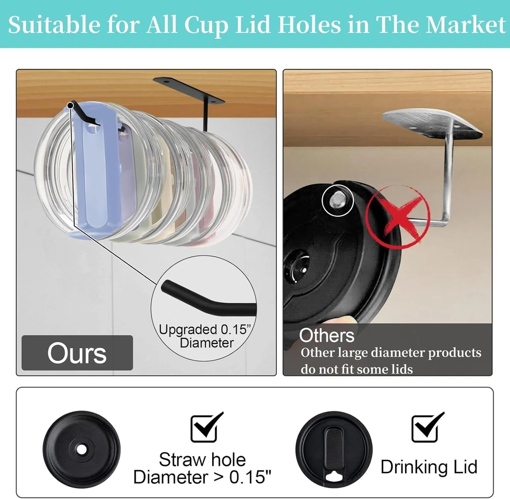 Upgraded Tumbler Lid Organizer 2-Pack Inside Under Cabinet Holder Self Adhesive or Drilling Hook Space Saving Kitchen Cup Lids Storage for Owala,Yeti,Stanley,Simple Modern,Hydro Flask Product Details Manufacturer: Amiqiwei Part Number: Tumbler Lid Hook Item Weight: 3.84 ounces Product Dimensions: 9.2 x 2.4 x 0.7 inches Item model number: Tumbler Lid Hook Style: Modern Material: Stainless Steel Mounting Type: Adhesive or Drilling Special Features: Rust Resistant Batteries Included?: No Batteries Required?: No Material: Stainless Steel Special Feature: Rust Resistant Mounting Type: Adhesive or Drilling Brand: Amiqiwei Style: Modern Efficient Storage Solution: Streamline your kitchen or workspace with our Tumbler Lid Organizer. It creates more space in your cabinets. Super Compact Design: We have updated the product to be slimmer, allowing you to hang cup lids of all different sizes. Holes larger than 0.15 inches can easily fit through! Created from Stainless Steel: this pruduct isn't just reliable – it's practically indestructible! Versatile Mounting Options: Easily install with either 3M adhesive or drilling for secure placement on cabinets or walls. Stylish Present Option: Beautifully packaged, ideal for gifting, backed by a 12-month worry-free service plan for peace of mind.