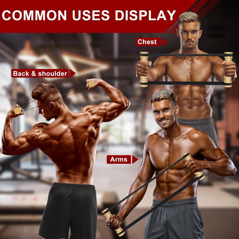 Upgraded Wooden Rip Stick with 6 Elastic Bands for Arm Workouts