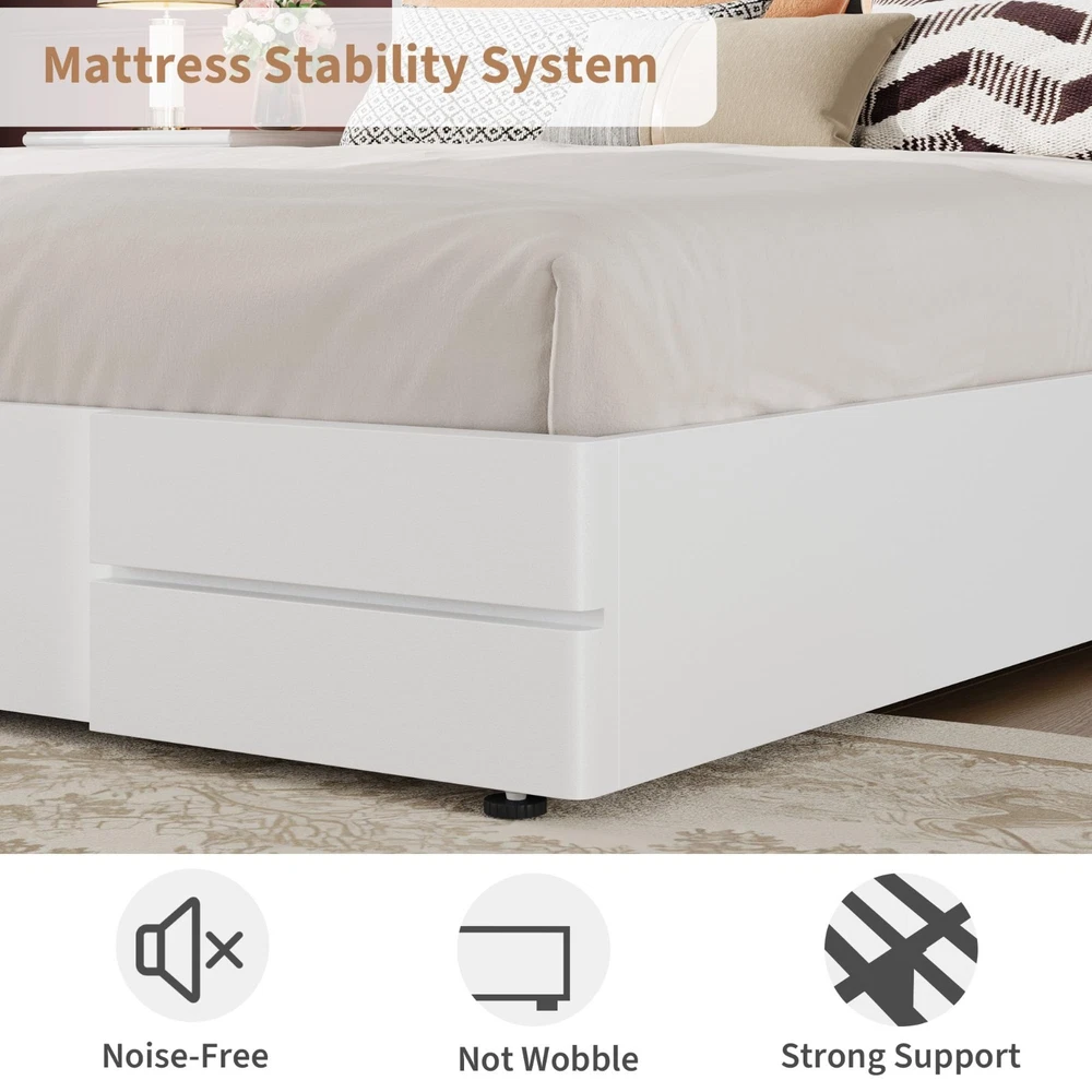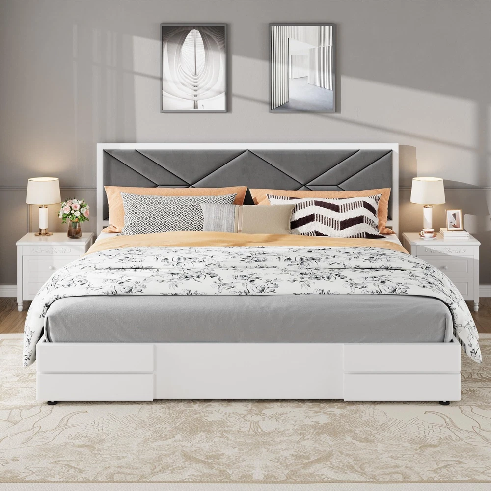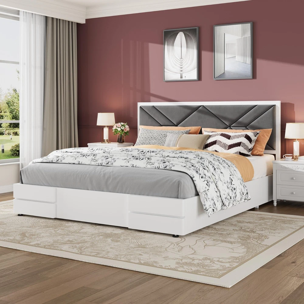 Bed Frame Queen Size, Queen Bed with Headboard and 4 Drawers, 1 USB Port and ...