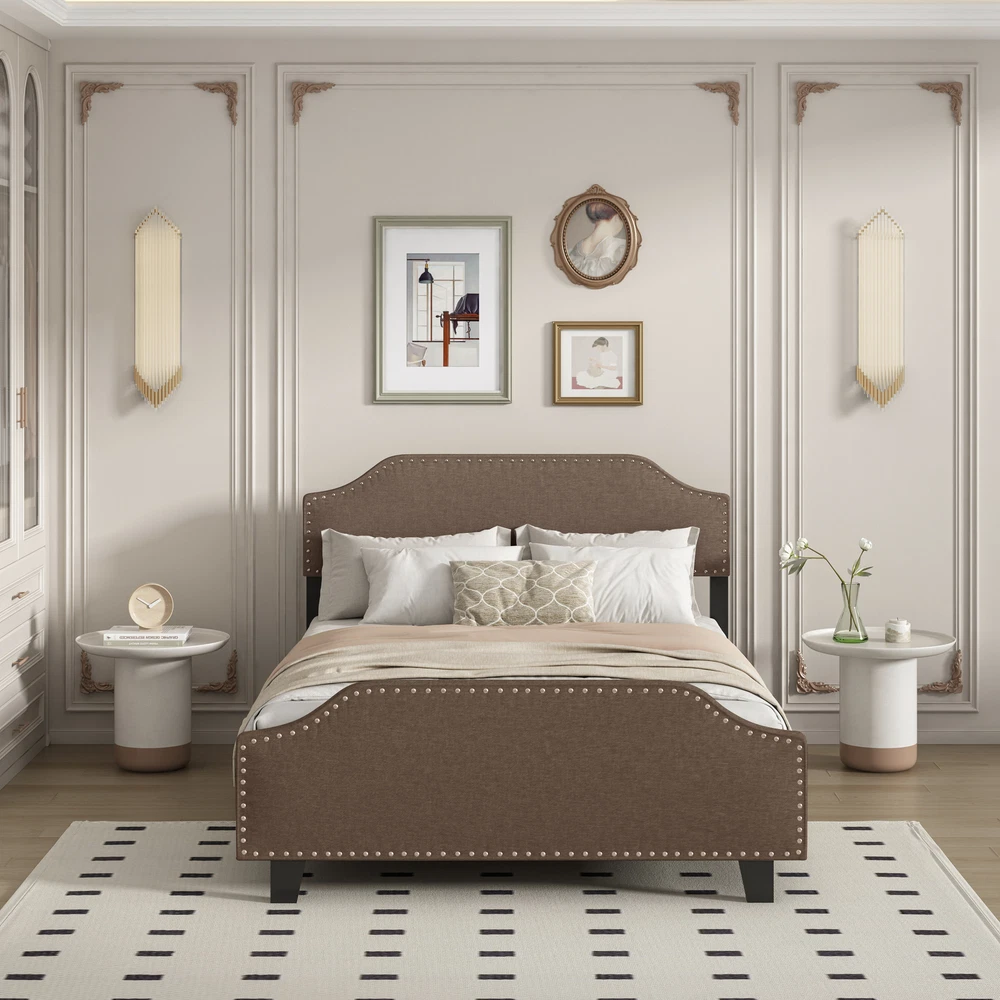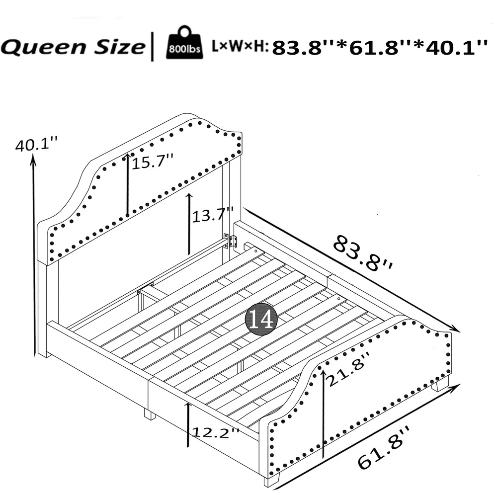 Brand Unbranded Item Length 66.14 Item Width 10.60 Item Height 19.30 Color Chocolate Frame Material Linen Type BED FRAME Compatible Mattress Size As described Diamond-ring-1 Simple life Upholstered Linen Queen Bed Frame, Platform Bed with Curved Shape Headboard and Footboard, Metal Frame with Wood Slat Support, Headboard Height Adjustable, No Box Spring Needed, Chocolate STRONG CONSTRUCTION - Sturdy wood and metal frame construction, the upgraded metal bed legs are more stable and durable UNIQUE DESIGN - Beautiful nailed trim for modern and traditional bedrooms, the upholstered platform bed adds calm,simplicity to your bedroom. Height-adjustable headboard to meet different usage needs NO BOX SPRING NEEDED - The upholstered platform bed supports your mattress without the need for a box spring,the mattress can be placed directly on the slats EASY TO INSTALL: We have prepared detailed installation instructions for you, an follow the installation instructions, it can be assembled in 30 minutes, come to assemble it and enjoy it. Upholstered Linen Full Bed Frame, Platform Bed with Curved Shape Headboard and Footboard Product material: Linen+Plywood+Metal Overall Product Dimension: 83.8"L x 63.4"W x 44"H Number of Package: 1 Weight Capacity: 500 LBS Number of Slats: 12 Box Spring Required: No Assembly Required: Yes Recommended Mattress Thickness:6"-8" Additional Tools Required: All Tools Included/Screwdriver Item Specifics Brand Unbranded Item Length 66.14 Item Width 10.60 Item Height 19.30 Color Chocolate Frame Material Linen Type BED FRAME Compatible Mattress Size As described Payment Returns Diamond-ring-1 Simple life DESCRIPTION PAYMENT SHIPPING RETURN POLICY CONTACT US Shop Category Store Home Other Hot Item Delivery New List Item Help & Info Payment Policy Shipping Policy Return Policy FAQ About Us Upholstered Linen Queen Bed Frame, Platform Bed with Curved Shape Headboard and Footboard, Metal Frame with Wood Slat Support, Headboard Height Adjustable, No Box Spring Needed, Chocolate STRONG CONSTRUCTION - Sturdy wood and metal frame construction, the upgraded metal bed legs are more stable and durable UNIQUE DESIGN - Beautiful nailed trim for modern and traditional bedrooms, the upholstered platform bed adds calm,simplicity to your bedroom. Height-adjustable headboard to meet different usage needs NO BOX SPRING NEEDED - The upholstered platform bed supports your mattress without the need for a box spring,the mattress can be placed directly on the slats EASY TO INSTALL: We have prepared detailed installation instructions for you, an follow the installation instructions, it can be assembled in 30 minutes, come to assemble it and enjoy it. Upholstered Linen Full Bed Frame, Platform Bed with Curved Shape Headboard and Footboard Product material: Linen+Plywood+Metal Overall Product Dimension: 83.8"L x 63.4"W x 44"H Number of Package: 1 Weight Capacity: 500 LBS Number of Slats: 12 Box Spring Required: No Assembly Required: Yes Recommended Mattress Thickness:6"-8" Additional Tools Required: All Tools Included/Screwdriver Item Specifics Brand : Unbranded Item Length : 66.14 Item Width : 10.60 Item Height : 19.30 Color : Chocolate Frame Material : Linen Type : BED FRAME Compatible Mattress Size : As described Payment Returns All rights reserved.