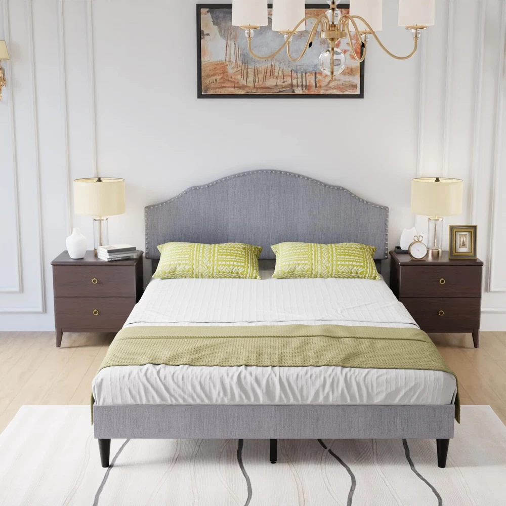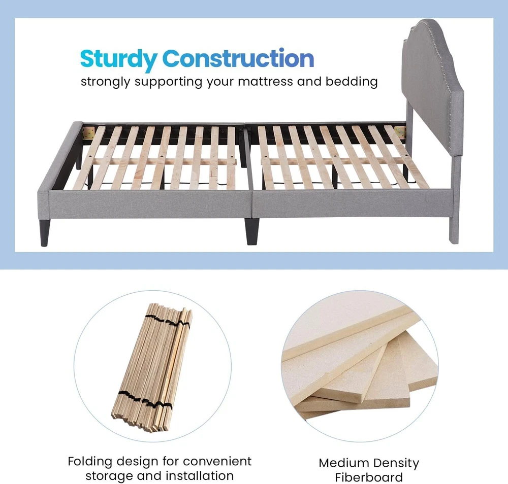 G IVING QUALITY SLEEP: The Upholstered Platform Bed headboard is made of high-quality linen fabric in appearance, with a built-in memory sponge with high resilience, which satisfies the matching of space, gives the room a warm and modern atmosphere, and is a unique color of the room. NO BOX SPRING NEEDED: This sturdy and durable Upholstered Platform Bed Frame is a classic design that works perfectly for any bedroom or guest room. Dependable wood slats support will extend the life of your memory foam, latex or spring mattress without the need for a box spring. STRONG & STURDY: This platform bed frame is made of premium wooden for ultimate strength, strongly supporting your mattress and bedding. Its foam-padded upholstery offers supportive comfort while relaxing. QUALITY ADVANTAGE: Abandoning the complicated decoration, our bed frame adopts concise lines and a classic finish to create a simple and stylish appearance. This platform bed comes with wooden slats, so you don't have to worry about finding a separate box spring or base. HEAVY DUTY BED FRAME: The solid wood slats and the center support legs can firmly stabilize the frame, have a strong load-bearing capacity, greatly prolong its service life. This well-designed upholstered bed frame can be used for many years. Best Upholstered Platform Bed : · The unique anti-slip strip design helps stabilize the mattress and eliminate squeaks. · Durable wood slats support and extend the life of your latex, memory foam or spring mattress without the need for a box spring. · Sufficient ground clearance for future dust cleaning. The cleaning robot can pass freely, making it easy for you to clean this cushioned platform bed. Sleek cloth decor gives you a perfect finishing touch, Impress your loved one with a deluxe modern bed frame. Sufficient under bed space is ideal for storing excess debris. Helps to keep the room clean and tidy. Designed with strong wood slats support, it does not require a box spring or any other additional foundations. Strong wooden slats and durable steel structures of this wingback bed make it lasting without shaking. We have adopted a humanized design, and anti-skid foot mats can prevent scratching the floor Our bed frame installation is simple and provides instructions that can help you complete the installation in the shortest possible time Listed by Frooition Frooition | No-js Template | eBay design, eBay store design, eBay shop design, eBay template design, eBay listing design, eBay Listing Tool (ver:froo_no_js)