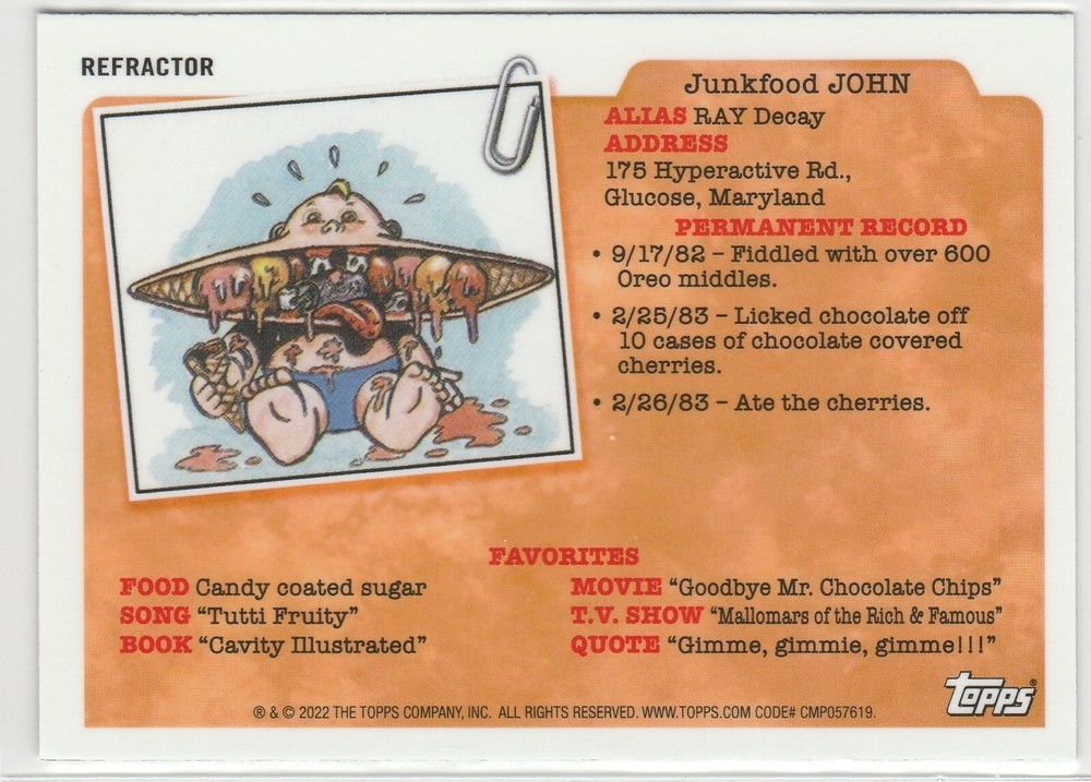 $ 4.75Hot Doug #185b Refractor Garbage Pail Kids 2022 Chrome Series 5 CS5 Rare