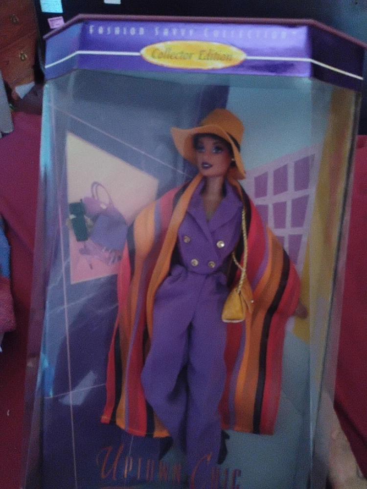 This Barbie doll is a must-have for collectors! The Uptown Chic 1998 Barbie Doll Collectors Edition Fashion Savvy is a stunning addition to any collection. This 11 1/2 inch fashion doll has medium-dark complexion, straight black hair, and brown eyes. She is dressed in a stylish outfit and comes with a set of accessories. This Barbie doll is an original, licensed reproduction from the Fashion Savvy series. It is made of vinyl, cloth, and plastic materials and has a career theme. The doll is suitable for all occasions and is perfect for display. Add this beautiful Barbie doll to your collection today! NEVER OPENED
