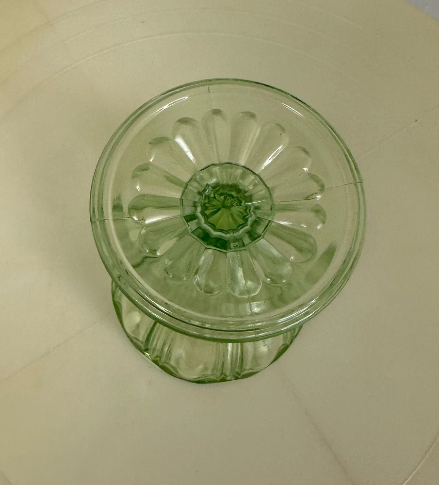 This is a beautiful Footed Tumbler in the Colonial Knife and Fork pattern. It was made by the Hocking Glass Co. from 1934 to 1936. It measures 4 inches tall, 2 1/2 inches across the top, and holds 5 oz. I have 2 available. It is in great condition with no chips or cracks pr scratches. We have other pieces in this pattern up for auction. We will gladly combine items for shipping whenever possible. If you do purchase more than one item, please wait until we send you an updated invoice before payment is made. This new invoice will reflect your combined shipping. From a smoke free home.