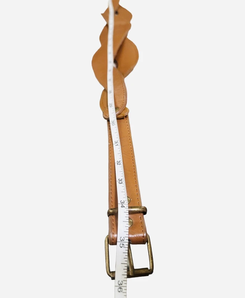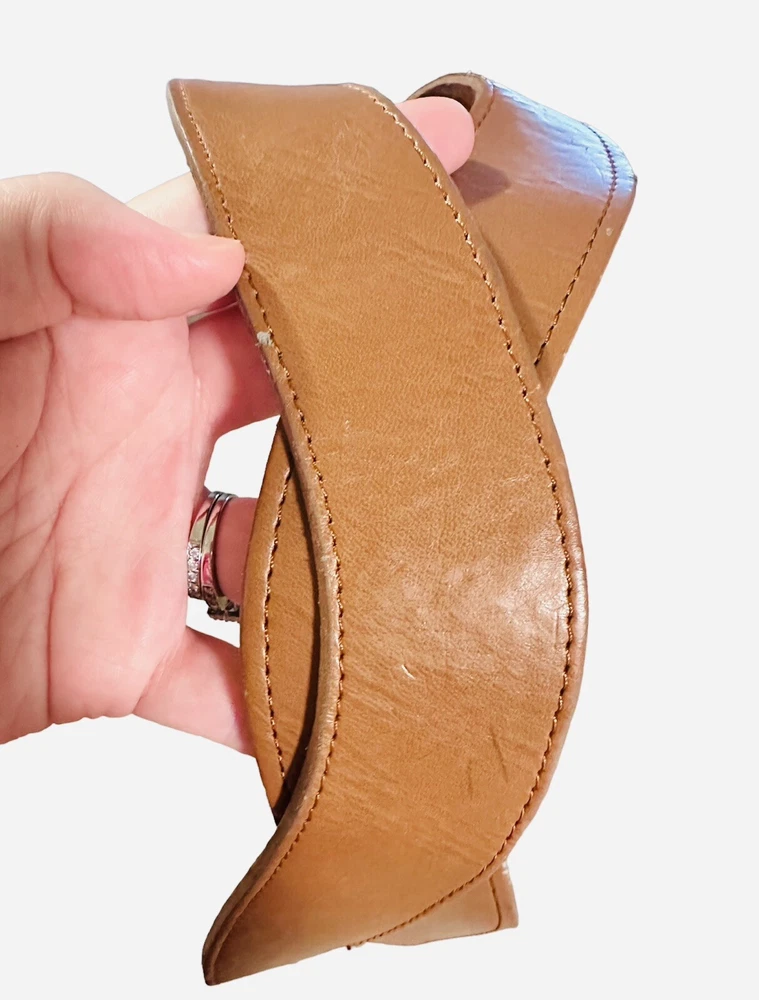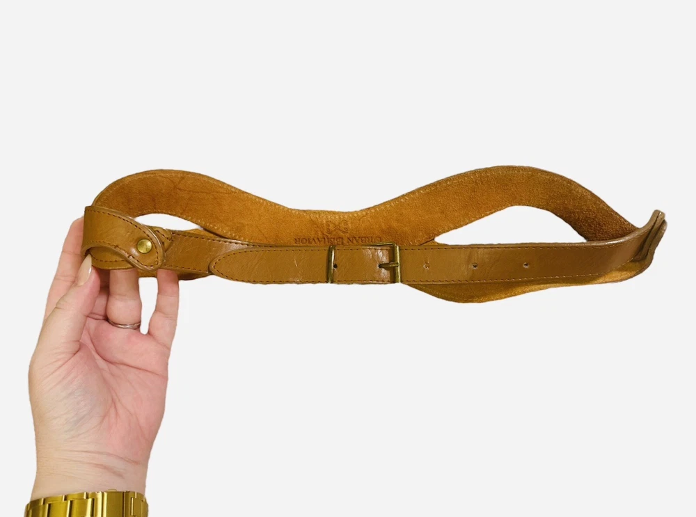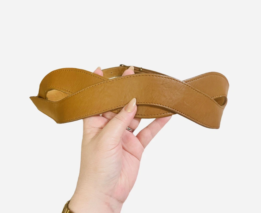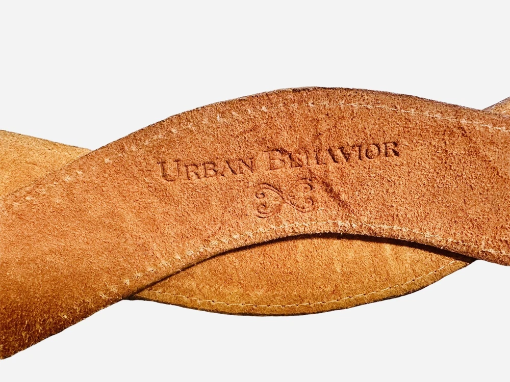 Pre-loved, Urban Behavior Western Style Swivel CrissCross Harness Belt with Bronze Buckle. Please review photos for wear mark/scratches/scuffs/fraying (please note measurements are approximate and may not be exact). This is a gorgeous harness belt and still has a lot of life left! There are so many cool ways you can style this belt. Hope it goes to a good home :)
