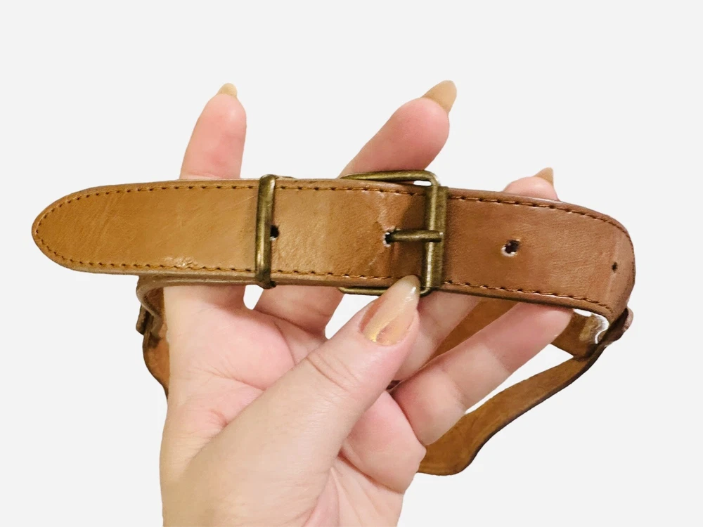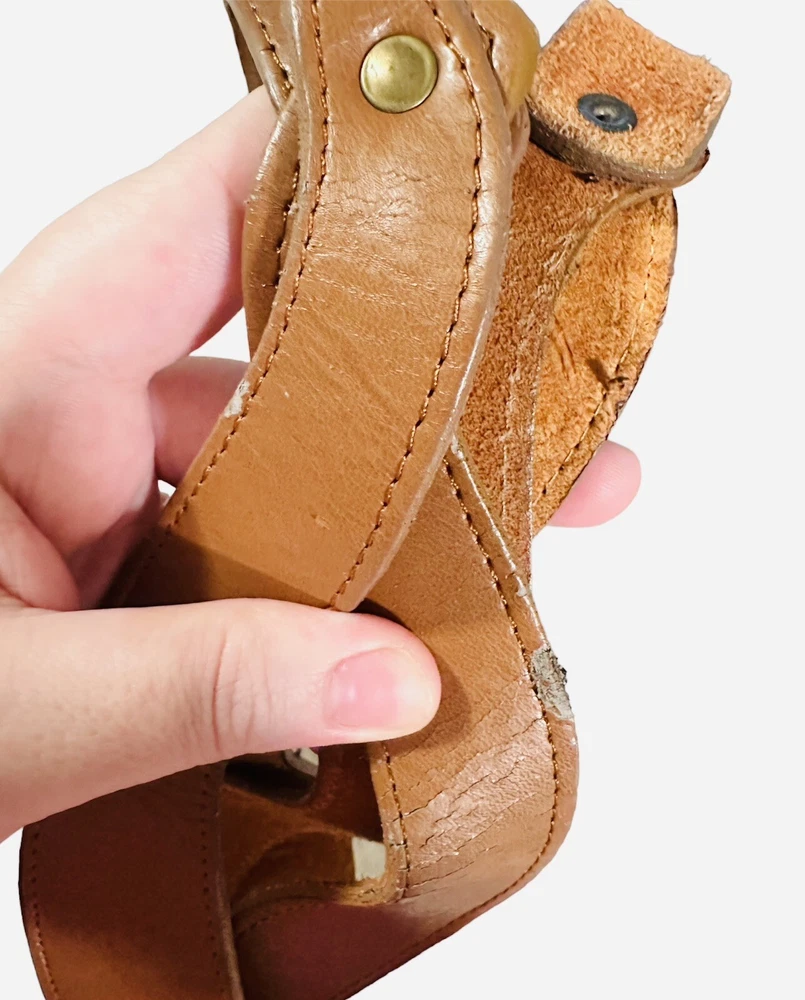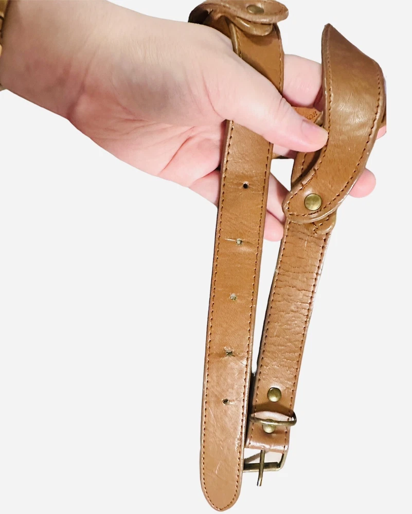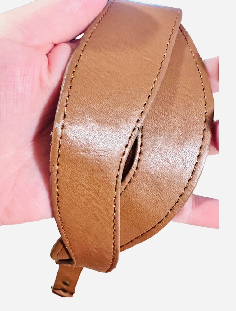 Pre-loved, Urban Behavior Western Style Swivel CrissCross Harness Belt with Bronze Buckle. Please review photos for wear mark/scratches/scuffs/fraying (please note measurements are approximate and may not be exact). This is a gorgeous harness belt and still has a lot of life left! There are so many cool ways you can style this belt. Hope it goes to a good home :)