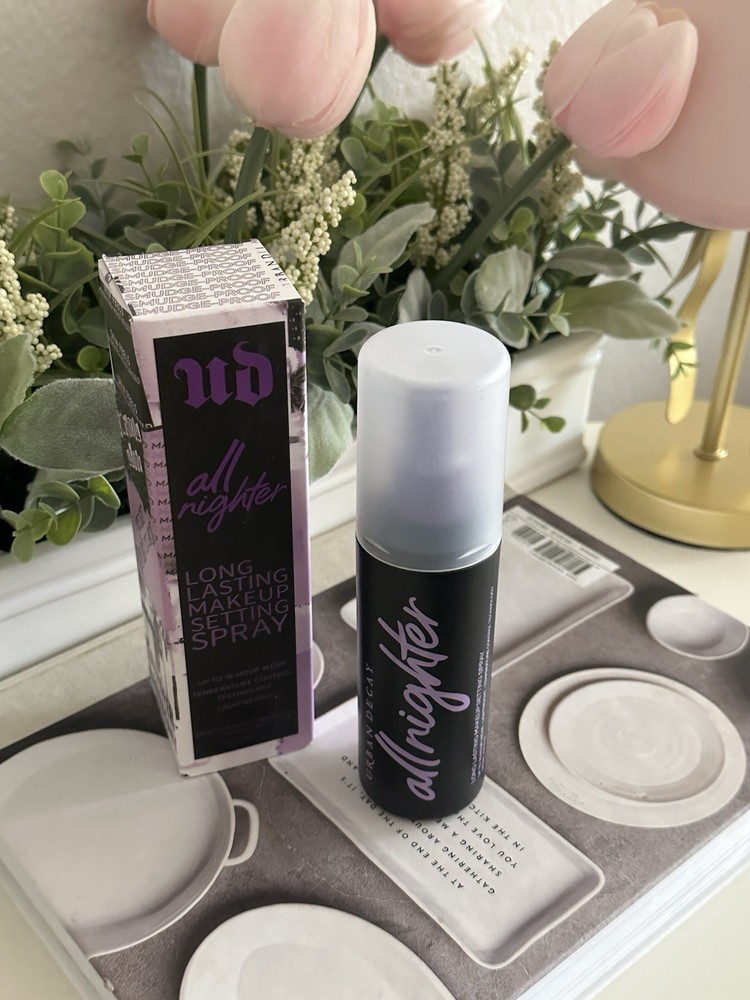 The Urban Decay All Nighter Long Lasting Makeup Setting Spray is a 4oz spray designed to keep your makeup in place all day long. This lightweight formula is perfect for all skin types and provides a long-lasting finish. Made in the United States, it is part of the All Nighter Long Lasting Makeup Setting Spray product line from Urban Decay. This full-size bottle is a must-have for anyone looking to achieve a flawless, lasting makeup look.