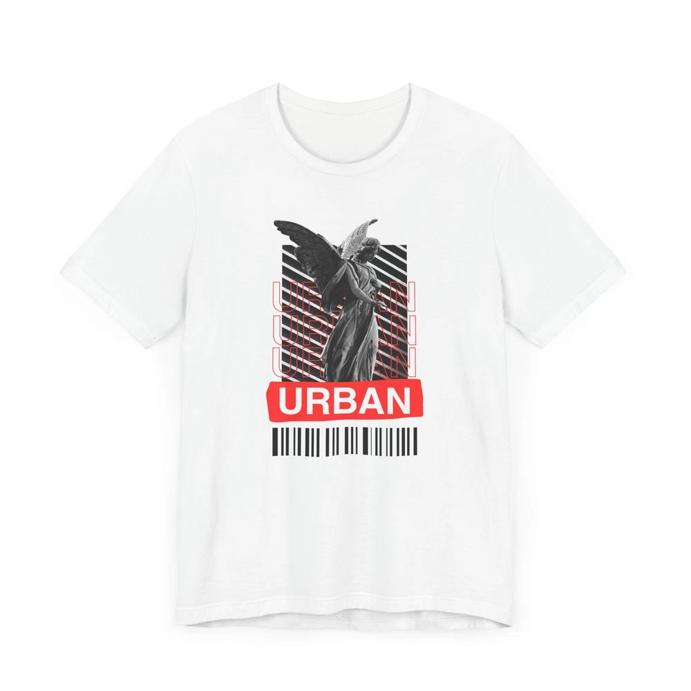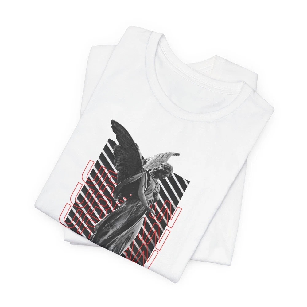 "Embrace urban elegance with our 'Urban' T-shirt, featuring a captivating image of an angel with wings. This tee merges the gritty charm of city life with the ethereal beauty of heavenly imagery, creating a unique and eye-catching design. Crafted from premium materials, it offers both comfort and style for your everyday adventures in the concrete jungle. Whether you're strolling through the streets or making a statement with your fashion, let this shirt be your urban-inspired wardrobe essential. Elevate your streetwear game with our 'Urban' tee, available in a range of sizes and colors to suit your urban style." This classic unisex jersey short sleeve tee fits like a well-loved favorite. Soft cotton and quality print make users fall in love with it over and over again. These t-shirts have-ribbed knit collars to bolster shaping. The shoulders are tapered for a better fit over time. Dual side seams hold the garment's shape for longer. .: Made with 100% Airlume combed and ring-spun cotton, a lightweight fabric (4.2 oz/yd² (142 g/m²)) that is easy to layer, breathable. Perfect for active and leisure wear. .: The retail fit that is perfect for casual and semi-formal settings. The crew neckline adds a classic, neat style that's perfect for accessorizing. .: Bella+Canvas manufactures all its products in the US and internationally in humane, no-sweat-shop, sustainable way and is part of the Fair Labor Association as well as Platinum WRAP certified. .: The tear-away label minimizes skin irritations. .: Fabric blends: Ash and Heather Prism colors - 99% Airlume combed and ring-spun cotton, 1% polyester; Heather and Solid Blend colors - 52% cotton, 48% polyester; Athletic Heather and Black Heather - 90% cotton, 10% polyester.