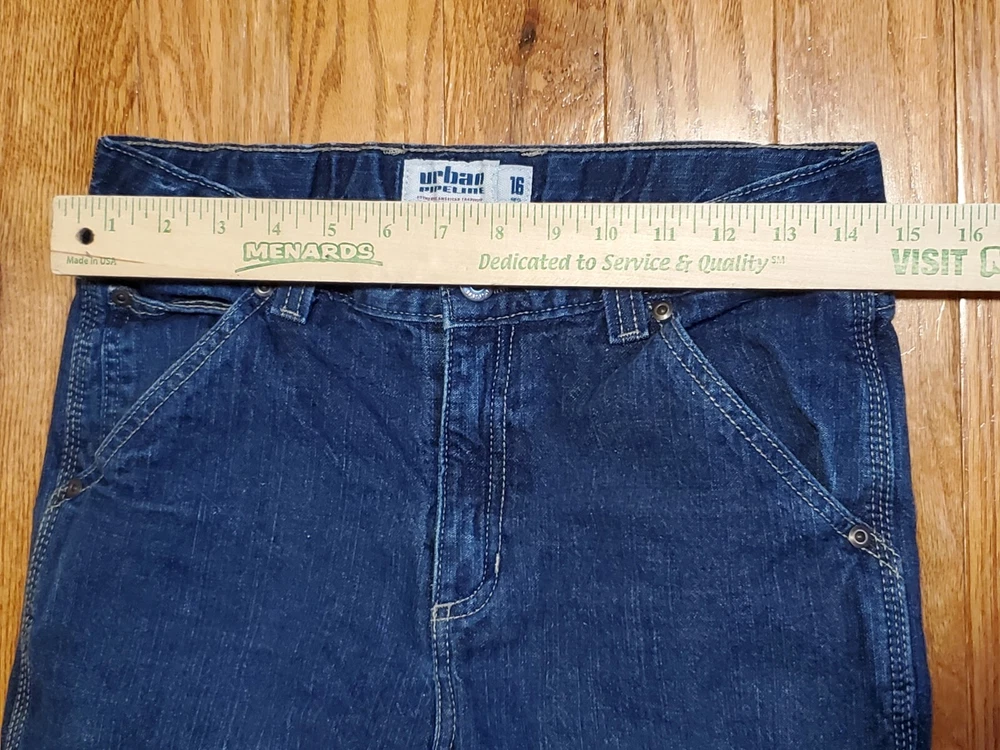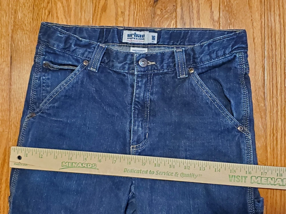 Urban Pipeline Blue Denim Carpenter Jean Boys Youth Size 16R Dark Wash Vguc. Utility pockets. Hammer loop. Faded knees. In good pre-owned condition. See pictures. Check out our other listings.