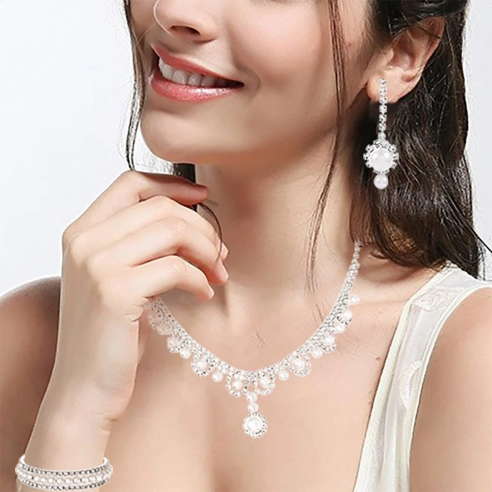 Urieo 3 PCS Pearl Bridal Jewelry Set Silver Rhinestone Necklace Drop Earrings Bangle Bracelet Elegant Costume Wedding Jewelry Accessories Prom Party for Women Bridal Product Details Package Dimensions : 0.1 x 0.1 x 0.1 inches; 0.35 ounces Department : womens Date First Available : February 23, 2024 Manufacturer : Urieo Country of Origin : China Brand, Seller, or Collection Name: Urieo Metal: alloy Material: Metal Gem Type: No Gemstone Clasp: Lobster Clasp Number of stones: 2