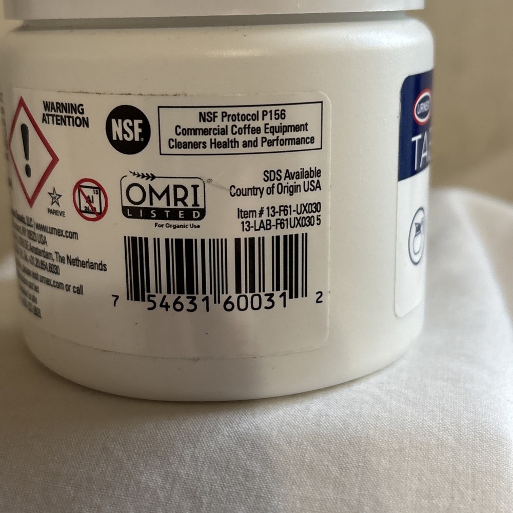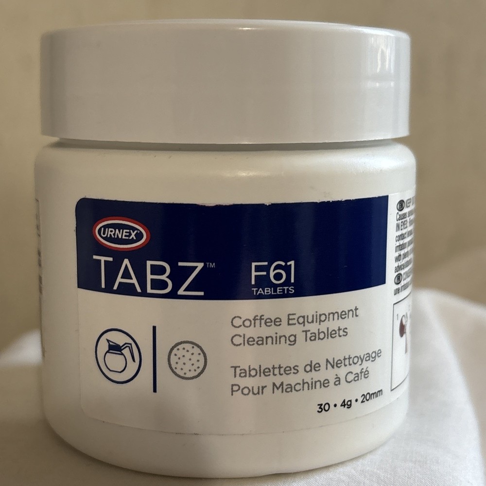 The Urnex Tabz F61 Coffee Equipment Cleaning Tablets are specially designed for cleaning coffee makers including brands like Braun, Cuisinart, Miele, Bosch, Keuring, Krups, and De'Longhi. These descaling tablets are quick and easy to use, providing a fast clean for your coffee equipment. With a convenient 30-count size, these tablets are a practical solution for maintaining the cleanliness and efficiency of your coffee machine. Perfect for regular use or as a convenient cleaning solution when needed.