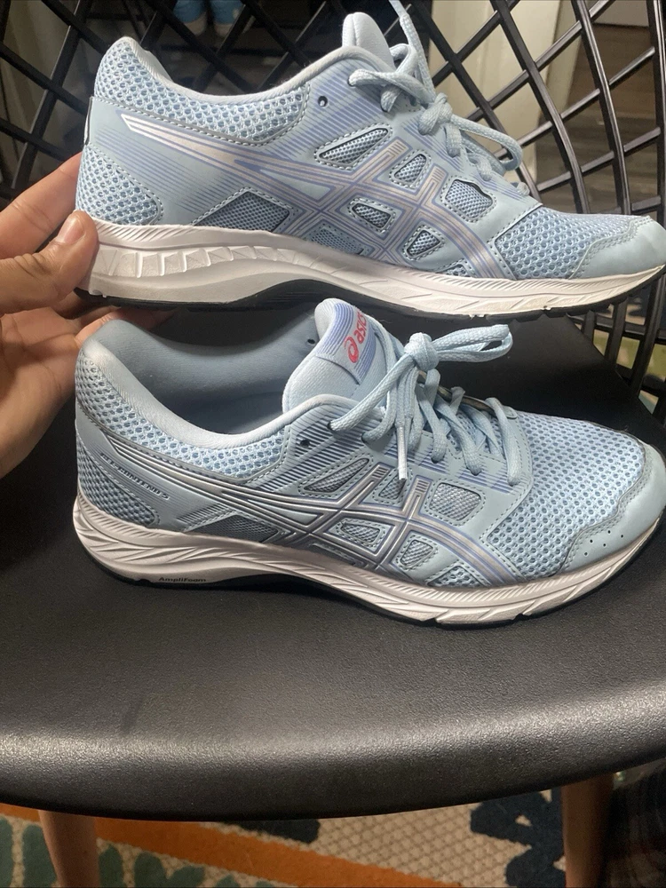 Elevate your active lifestyle with these ASICS GEL-Contend sneakers in a beautiful skylight blue/silver colorway. Designed for women, these athletic shoes feature a low-top shoe shaft style with a lace-up closure for a secure fit. The rubber outsole provides excellent traction, while the synthetic upper material ensures durability and comfort. These sneakers are perfect for any workout or casual day out, and they come in a size 8 for US shoe sizes and 39.5 for UK and EU shoe sizes. The ASICS brand is known for its quality and innovation, and these sneakers are no exception. Add them to your shoe collection today and step up your fitness game!