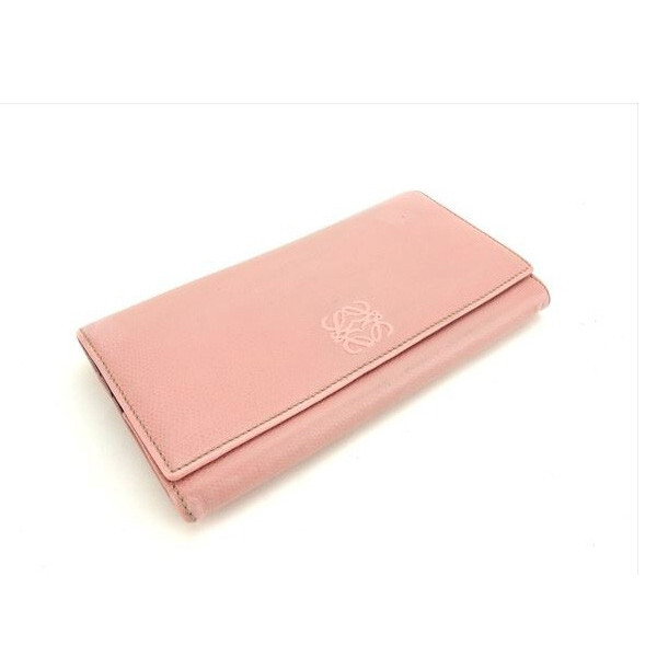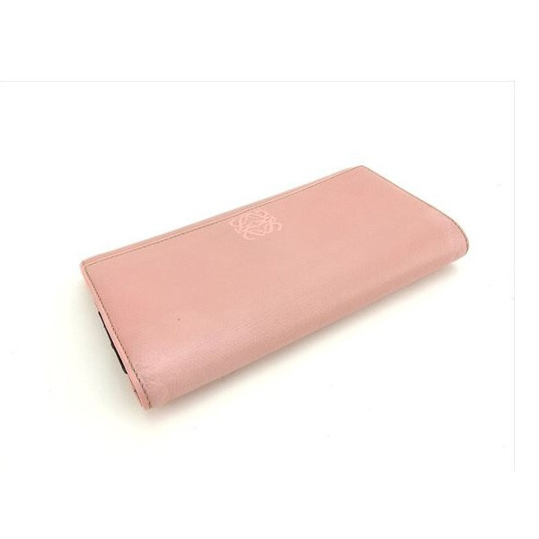 Used LOEWE Long Wallet Zippered Pink Storage Unisex Accessories L689