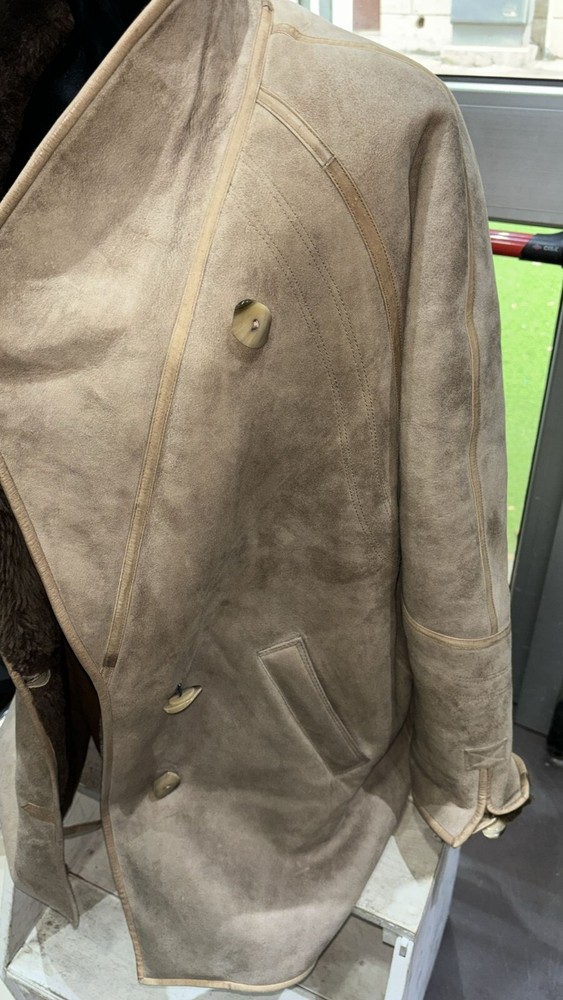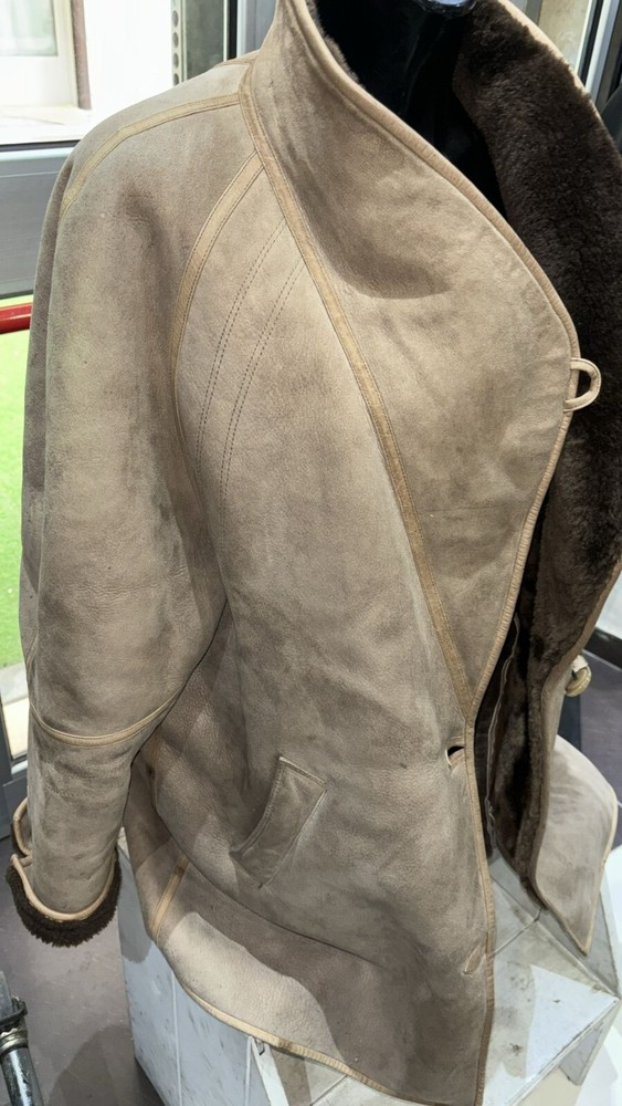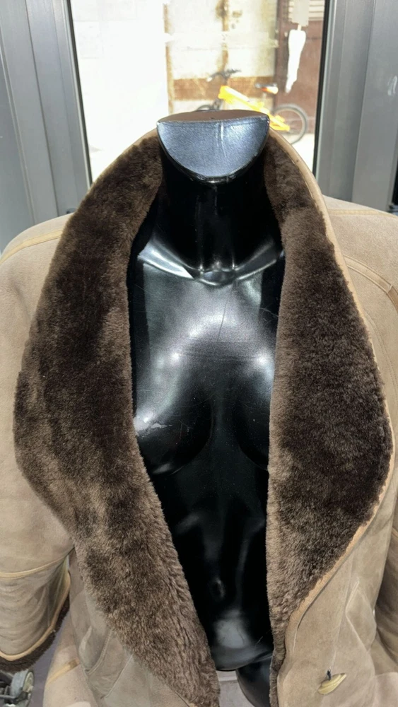 Outer Shell Material:Does not applygtin13:Does not applyDepartment:womanColor:BrownType:SheepskinStyle:COATVintage:YesSize:42material texture:SheepskinClosure:ButtonMaterial of the coating outer:SuedeBrand:ShearlingSize Type:RegularUPC:Does not apply