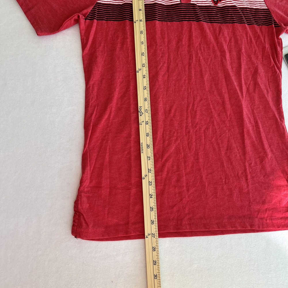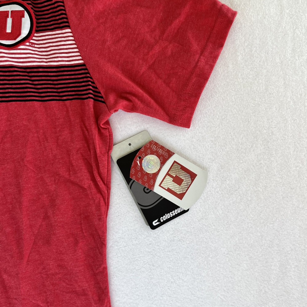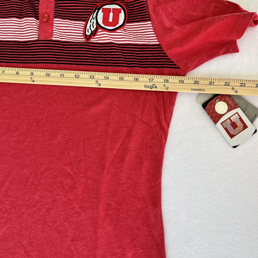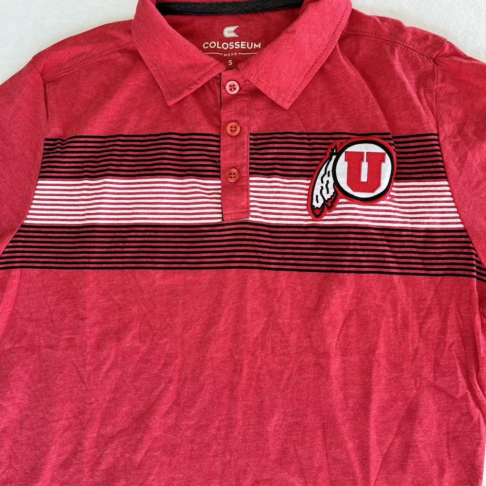Colosseum Athletic Apparel University of Utah Utes Men's Size Small Polo/Golf Shirt Heather Sport Red short with horizontal black and white stripes across the chest Stitched patch Utah Logo on Left chest Collared shirt with 3-button placket NCAA officially licensed See photos for details, appearance and measurements Brand New With Tags Buy It Now and Save $$ Inv#0479
