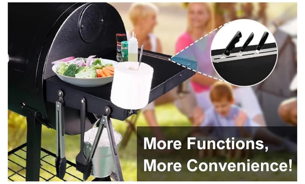 The Utheer Grill Side Shelf is designed specifically for Pit Boss Pellet Grills, making it a convenient and compatible addition to your outdoor cooking setup. This tabletop shelf provides extra space for food preparation or holding utensils while grilling, enhancing the functionality of your grill. Its sturdy construction ensures durability and stability, making it a practical and useful accessory for your outdoor cooking needs.