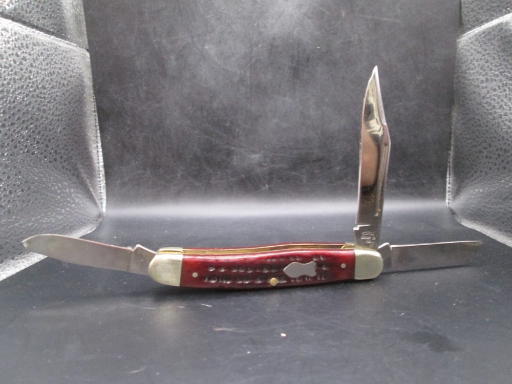 Blade Material: Stainless Steel Number of Blades: 3 Blade Range: 2.76 - 4in. Opening Mechanism: Manual Color: Red Seller Notes: “PLEASE SEE PHOTOS” Brand: Utica Country/Region of Manufacture: United States Original/Reproduction: Original Type: Pocketknife