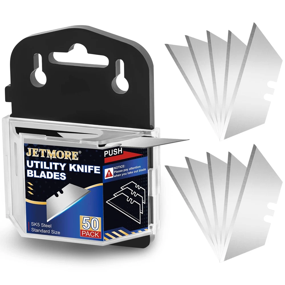 Utility Knife Blades, 50 Pack Box Cutter Blades, SK5 High Carbon Steel Utility Blades, Standard Size Blades for Box Cutter, Sharp Box Cutter Blades Refills, Razor Knife Blades for Cutting 【High Quality SK5 High Carbon Steel】This utility knife blade is made of high quality SK5 high carbon steel. The blade made of this material is not easy to rust. It is specially designed for heavy utility knife. The solid steel makes the blade have a longer service life. 【Sharp & Durable】The edge of the box cutter blade has been precisely honed. The blade is extremely sharp, which can easily complete your cutting work and maximize efficiency. The blade is not easy to bend or break. Please be careful when using it to avoid cutting fingers. 【Handheld Dispenser】These knife blades are packed in a box carefully designed by us, which is safe and convenient for storage. The blade box is 9.7CM/3.8 Inch long and 7CM/2.8 Inch wide, with three holes on the top. You can hang it anywhere. You can safely take out one blade each time. The number of remaining blades can be seen on the transparent side. 【Widely Used】Standard size utility knife blade, 3.2CM/1.26 Inch in upper width, 6CM/2.37 Inch in lower width, 18.6CM/0.73 Inch in height, is perfect for both retractable box cutter and folding utility knife. You can cut cardboard, leather, rope, rubber or PVC after installation. 【After Sales】If you encounter any problems in using the blade, please contact us immediately. We are happy to help you solve any problems you encounter in a timely manner. Each blade has been strictly tested. aims to provide people with more professional and high-quality knife tools. Shipping We offer FREE shipping on all orders! We ship within Three business days of payment, usually sooner. We use a selection of shipping services such as UPS, FedEx, USPS etc. We only ship to the lower 48 states, no APO/FPO addresses or PO Boxes allowed. Local pickups and combined shipping options are not provided at this time. Return You can return a product for up to 30 days from the date you purchased it. Any product you return must be in the same condition you received it and in the original packaging. Please keep the receipt. Payment We accept payment by any of the following methods: PayPal Please pay as soon as possible after winning an auction, as that will allow us to post your item to you sooner! Feedback Customer satisfaction is very important to us. If you have any problem with your order, please contact us and we will do our best to make you satisfied. Contact Us If you have any queries, please contact us via ebay. We usually respond within 24 hours on weekdays. Please visit our eBay store to check out other items for sale! Thank you for shopping at our store.