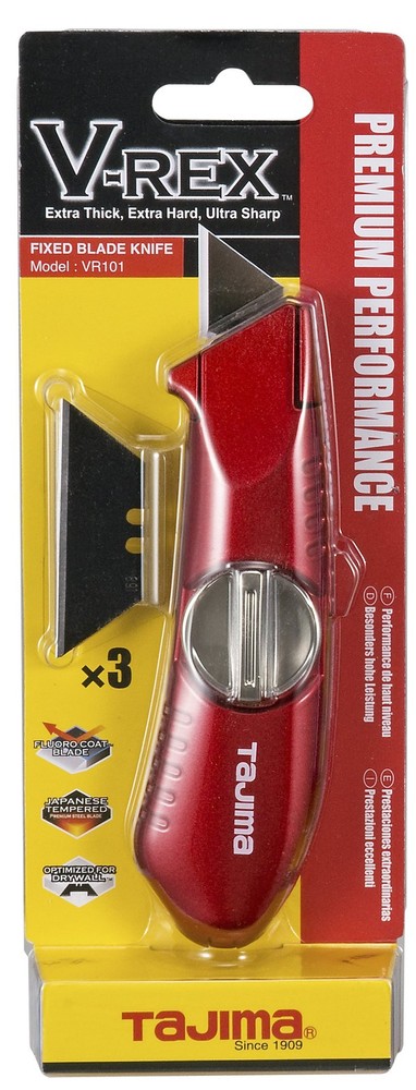 PREMIUM GRADE STEEL - Japanese tempered steel produces maximum blade strength for long-lasting durability and performance PRECISION CUTTING - Multi-step sharpening creates an ultra-sharp blade for precise, accurate cuts FIXED BLADE - Blade stays tightly secured in place for precise cutting jobs EASY BLADE REPLACEMENT - Side-mounted lock opens easily for quick, seamless blade changes REPLACEMENT BLADES INCLUDED - Comes with 3 V-REX blades perfect for cutting drywall and other heavy-duty building materials