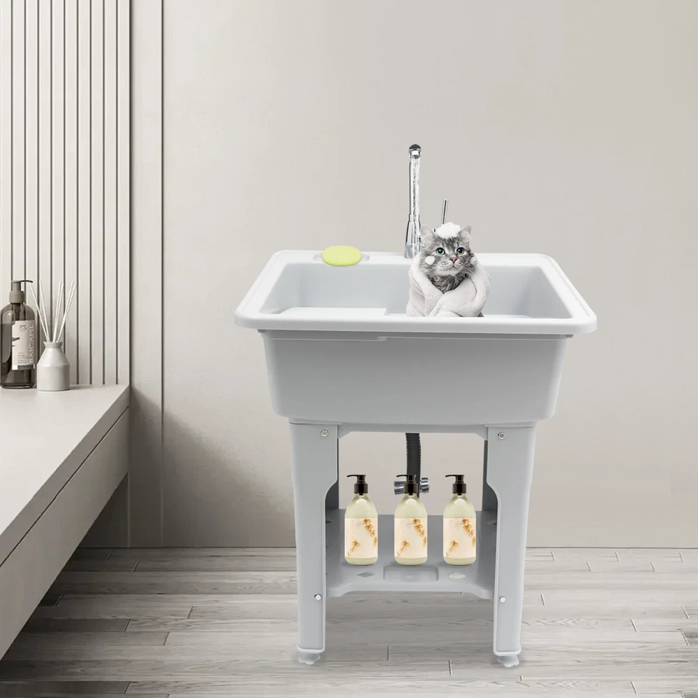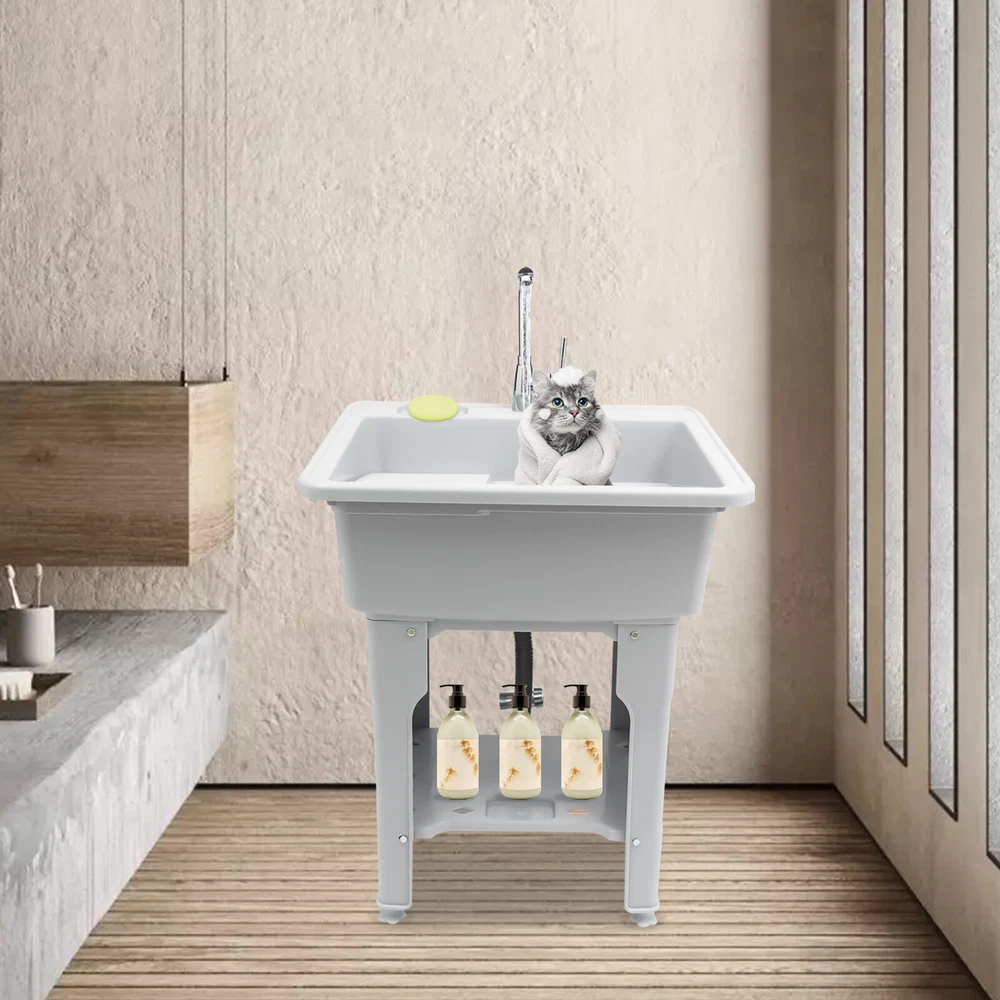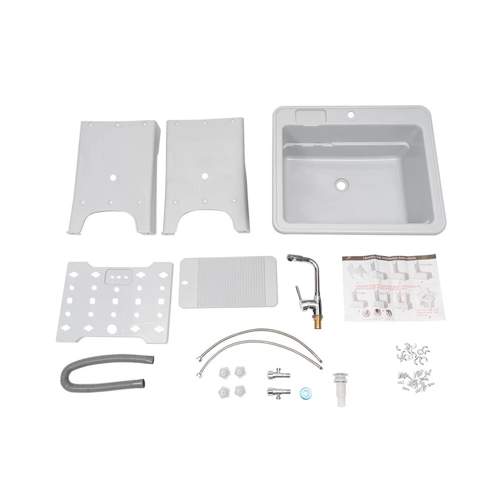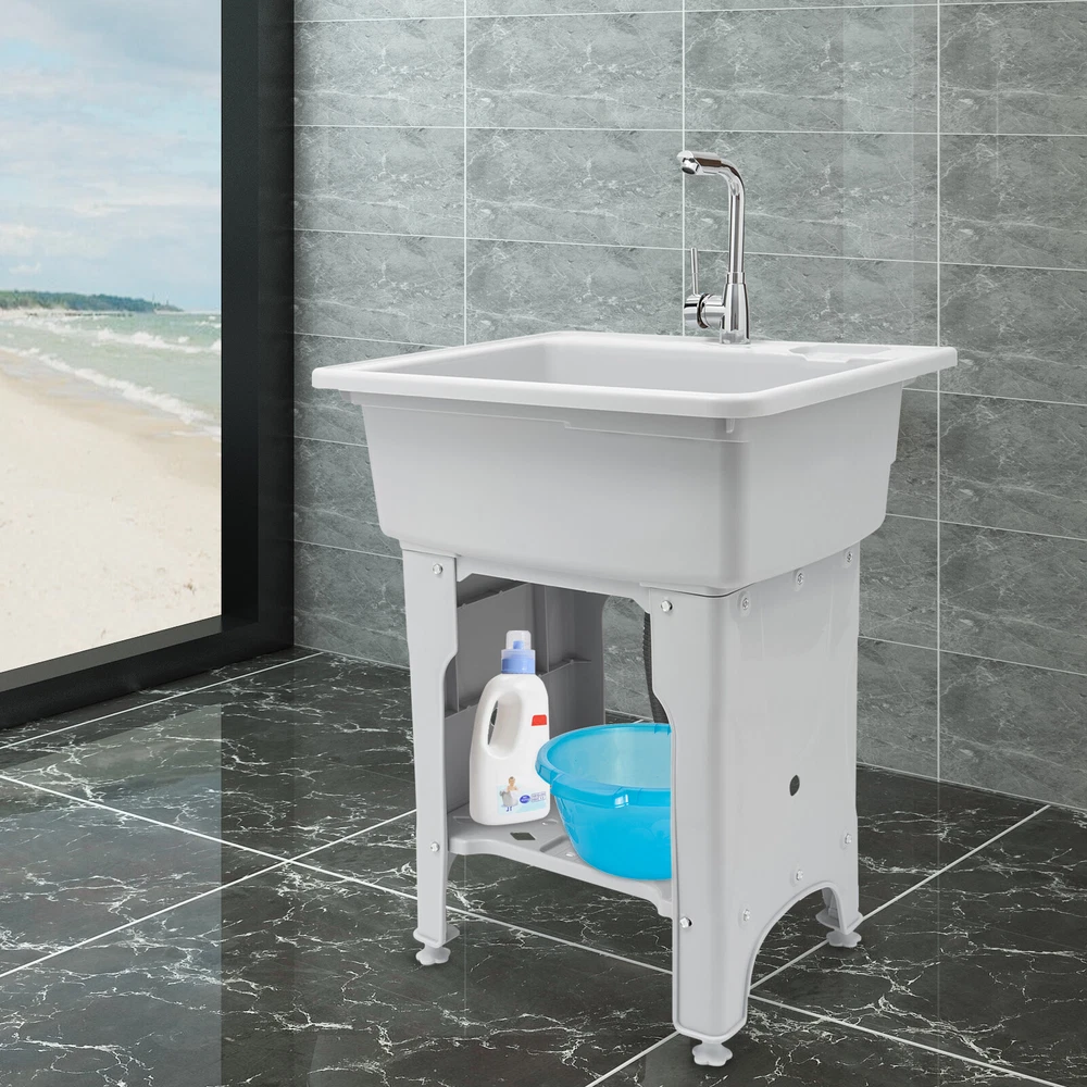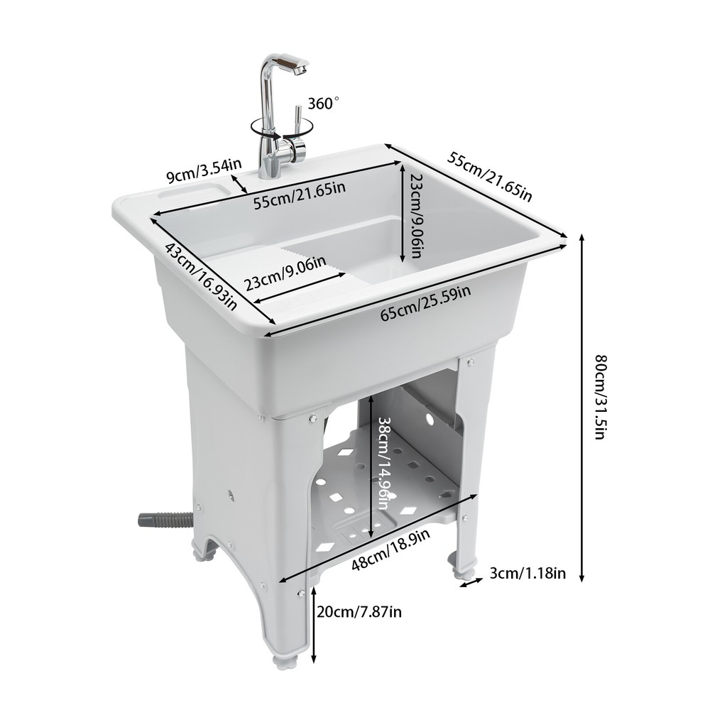 Welcome to alwaytty01~ Welcom to alwaytty01~ Laundry Sink, Spacious Utility Sink, Utility Sink with Storage Shelf, Slop Sink Wash Station Description This multifunctional laundry sink is made of high-quality PP material with strong load-bearing capacity and good stability. Hole-free installation and hand-screwed mounting parts make installation easier. A complete range of accessories is available to meet your washing needs, while the classic gray look and clean lines fit any home decor style, adding a simple and elegant tone to your bathroom. Key Features ??Build to Last: The laundry sink is mainly made of PP, with high hardness, weather resistance , wear resistance and impact resistance , so it can be adopted in some humid environments such as toilets and bathrooms. ?? Multi-functional Use: It is not only a large laundry sink( 21.65*16.93*9.06 in ch) but also a storage rack for washing products and a pet bath for grooming and bathing small and medium-sized dogs at home. ?? Ergonomic Design: The ergonomic total height of 31.5 inches allows you to stand and wash clothes without bending down, reducing the pressure on the lumbar spine. ?? Big Load Capacity: With its high-quality material, rectangular structure, stiffener, and base fixed feet, it can bear up to 441 lbs of weight, showing its strong stability. ?? Nice Partner: The faucet with 2 hoses controls hot and cold water, and the 360° swivel feature allows it to cover every corner of the sink for easy cleaning. Meanwhile, the removable washboard can be used with the faucet for washing clothes. ?? Fancy Decoration: The classic grey appearance and simple lines can adapt to any home decor style and add a simple pure color to your space. ?? Simple Installation: Without drilling holes when installing, you just need to follow the detailed English installation instruction to tighten the screws to complete the installation, which greatly saves time! ?? Easy to Clean: With its smooth surface, detachable faucet nozzle, simple construction, and convenient faucet, you can easily clean it even if you leave it outdoors and it accumulate s dust . ?? Customer Service: We aim to provide quality products and services. If you have problems, please feel free to contact us. We will reply and solve the problem for you as soon as possible. Details Soap Slot: The soap slot above the laundry chute has a non-slip pattern on the inside to effectively hold soap in place. The lower shelf's soap slot is hollowed out to filter residual moisture. Hollow Shelf: The lower shelf can be used for laundry detergent or liquid laundry, and its hollowed design can quickly filter resid ual moisture from wash items, making it less likely to harbor bacteria . Water-retaining Edge: The water-retaining edge prevents internal water splashing, thus keeping the laundry room dry and tidy. Application It is applicable to laundry, bathrooms, sundry rooms, garages, basements, balconies, courtyards, gardens, etc. It can be used as a cleaning tank, pet bath, or storage rack. Specification Material: PP, Alloy, and Stainless Steel Color: Gray Assembly Required: Yes Faucet Opening: Single Hole Mounting Type: Freestanding Style: Modern Shape: Rectangular Product Care Instructions: Wipe with a Damp Cloth Water Leakage Device: Flip Type Maximum Bearing Capacity: 200kg/441 lbs Gross Weight: 9.4kg/20.72lbs Width of Washboard: 23cm/9.06in Soap Slot Width: 9cm/3.54in Internal Size: 55*43*23cm/21.65*16.93*9.06in Shelf (L * H): 48 *38cm/18.9 * 14.96in Foot Height: 20cm/7.87in Adjustable Raised Foot Height: 3cm/1.81in Inlet Pipe: 60cm/23.62in Outlet Pipe: 80cm/31.5in Interface Size of Water Inlet Pipe: 1/2 in Product Size: 65*55*80cm/ 25.6* 21.65 *31.5in Package Size: 65*58*29cm/ 25.6*22.83*11.42in Package Included 1 * Laundry Sink 1 * English Instruction 1 * Washboard All Accessories for Installation Notes Please allow the slight color difference caused by the shooting light and the 1-3 cm error due to manual measurement, and make sure you do not mind before ordering. Welcom to alwaytty01~ Payment Delivery details Terms of sales About us Contact us Payment We accept ebay payment 。 Fees such as import duties, taxes are not included in the item price or shipping costs. These charges are the buyer's responsibility. Delivery details Shipping: 2-9 working days to: USA Terms of sales We maintain high standards of excellence and strive for hundred percent customer satisfaction. Feedback is very important to us. We hope that you contact us immediately before you give neutral or negative feedback, so that we can address your concerns. It is impossible to address issues if we do not know about them! About us Your satis faction is our ultimate goal. We work hard to earn your trust and future business. Our certified technicians have tested each item before shipping. The unit comes with 1 year limited warranty on all manufacturing defects. a) If you receive a defective item, you may return it or ask for a discount. Please contact us within 14 days after you receive the package. b) What you returned must be intact and in its original packaging as re? u. Customer is responsible for shipping costs of the returned item. c) We will cover the cost of shipping back t with the shipping rate indicated in the registration page. We will send you a new unit or refund the full payment you paid. Thank you. Contact us Business Hour Business Hour: Monday To Friday: 8:30 AM to 5:00 PM (Beijing China time) Due to time zones, our reply to your questions may not be immediately. But within above working time, we will reply your email within 24 hours. If it's non-workdays, please kindly be patient and wait till Monday. Please contact us with ebay message. Please feel free to contact us if you have any questions. Monday To Friday: 8:30 AM to 5:00 PM (Beijing China time) Due to time zones, our reply to your questions may not be immediately. But within above working time, we will reply your email within 24 hours. If it's non-workdays, 