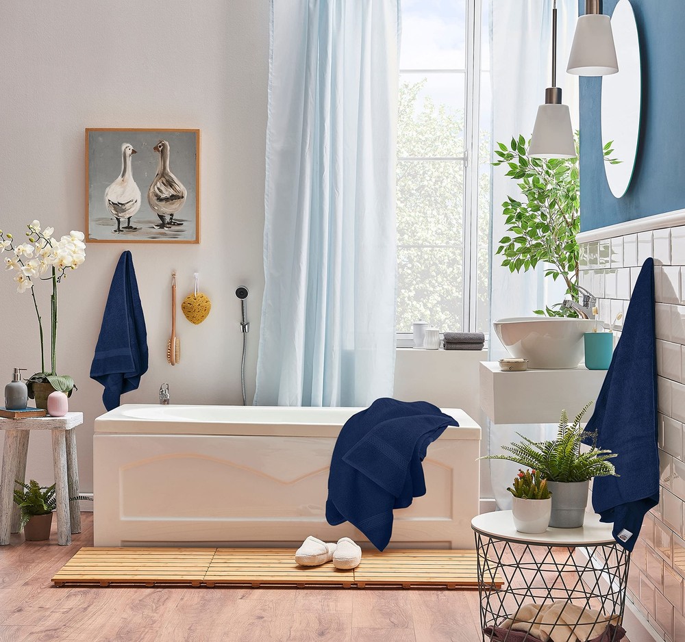 Just got this Utopia towel set and I'm obsessed! The 600 GSM cotton feels so plush and absorbs water instantly—perfect for baths, gym, or spa days. The navy blue looks elegant, and the set includes everything you need. They’re soft, durable, and stay fluffy even after washing. Great value for a premium feel—totally worth it!